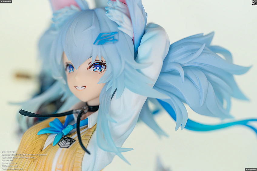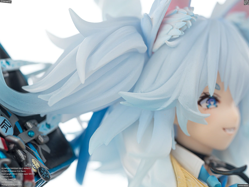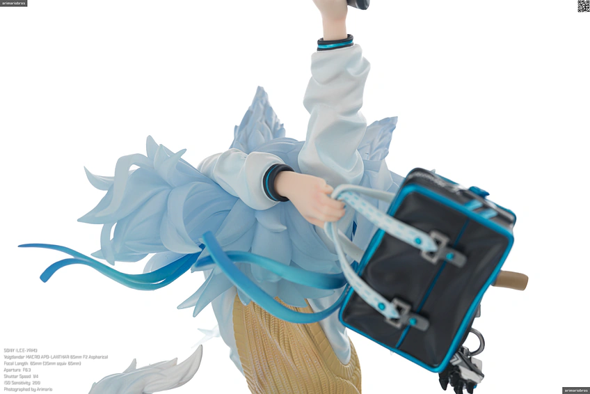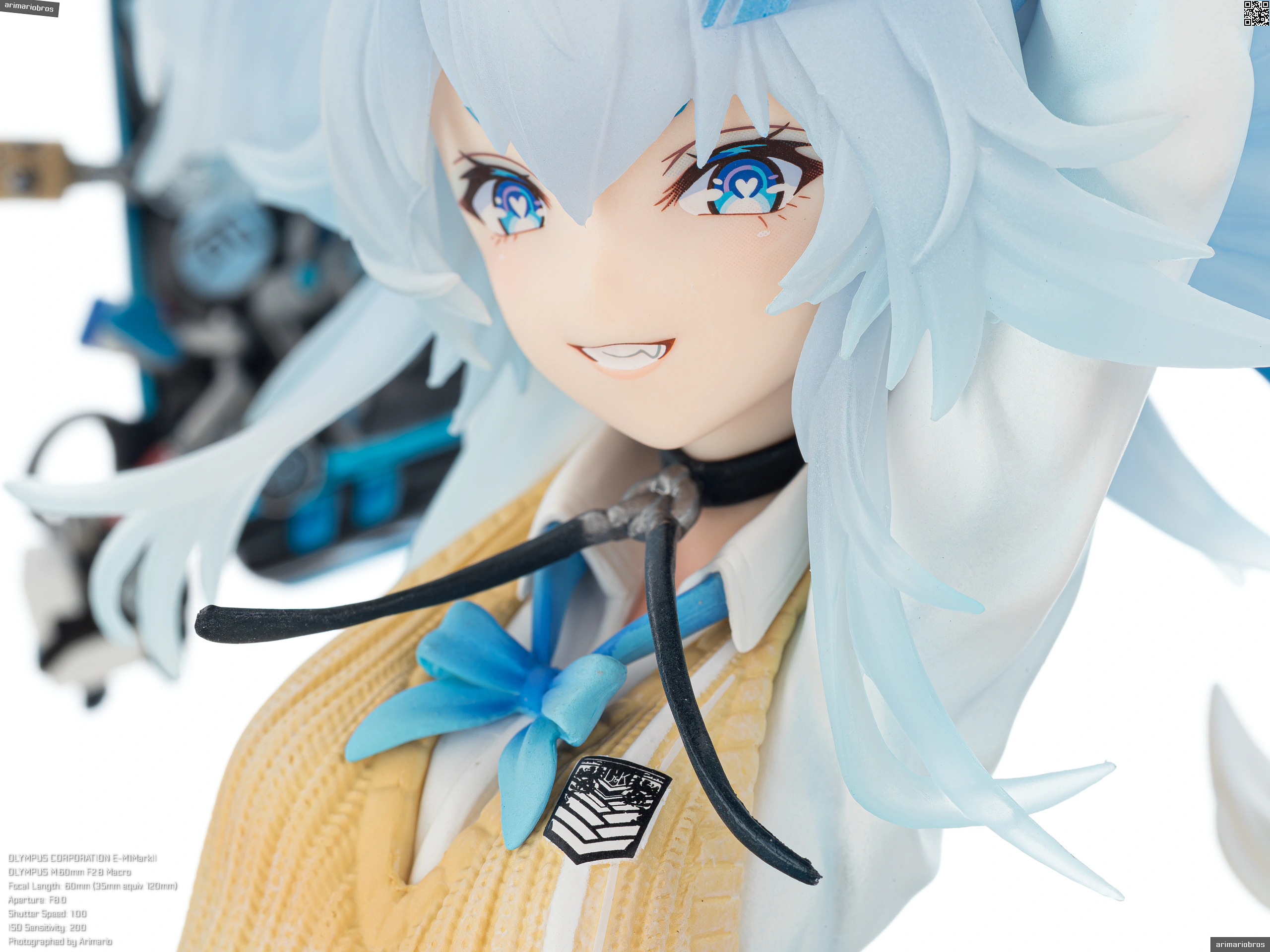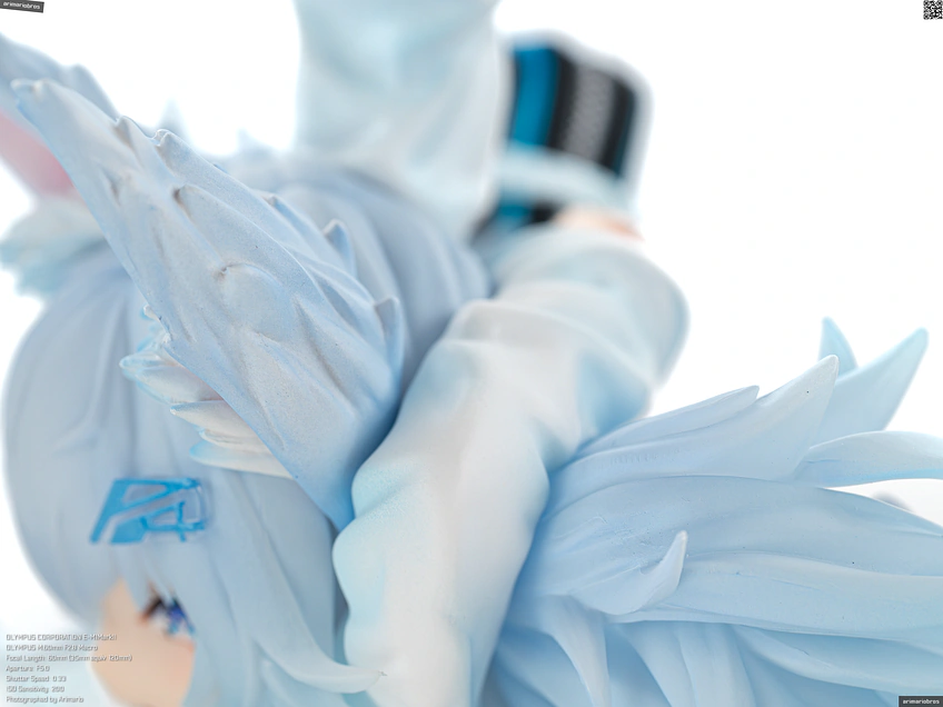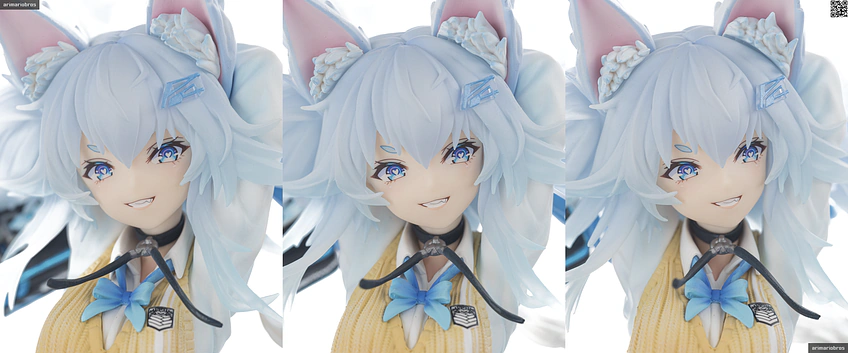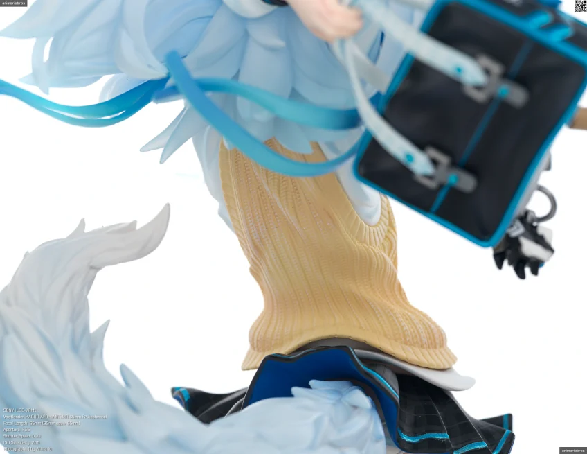 ポージングの再現度もそうですが、彩色見本からの変化がないところが嬉しい。強いていうなら、髪色は彩色見本より水色が強くなっているようにも感じますが、撮影時の色被りや現像時の設定でどうとでも転びそうな差です。ファット・カンパニーは比較的シンプルな造形のフィギュアを手掛けており派手さはありませんが、手堅いメーカーという印象がありますね。