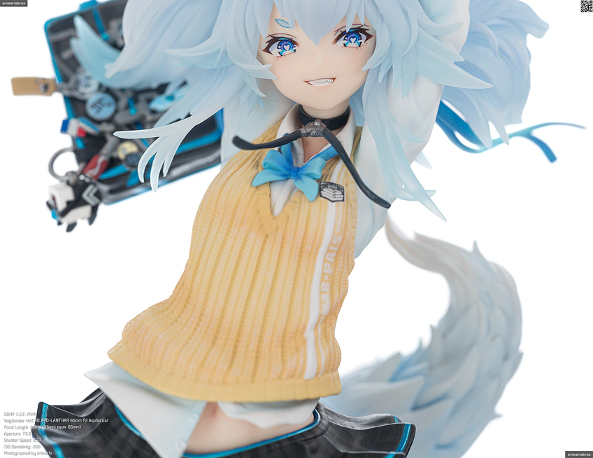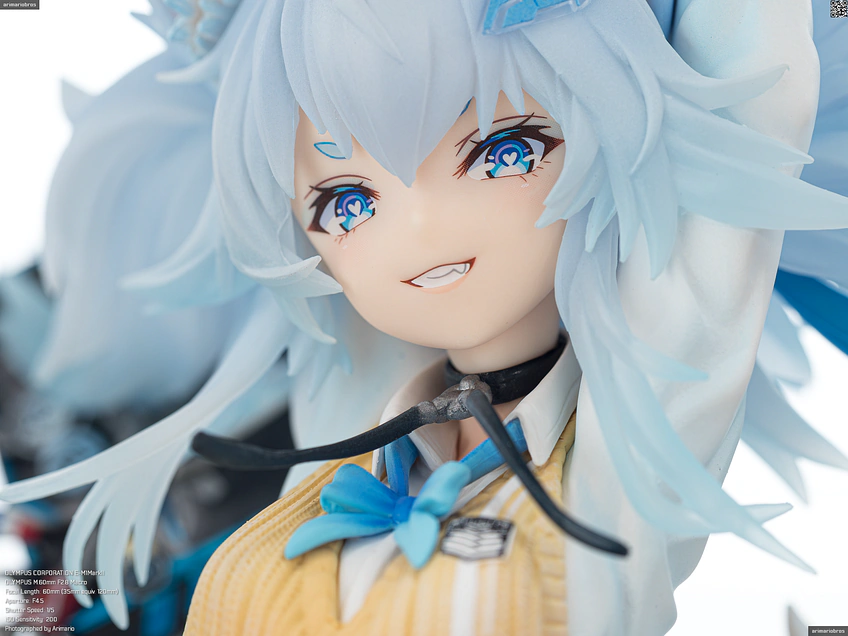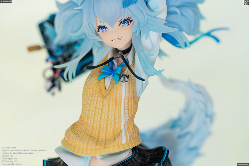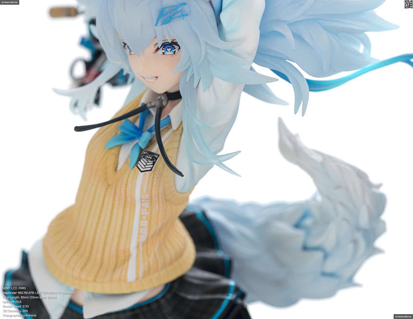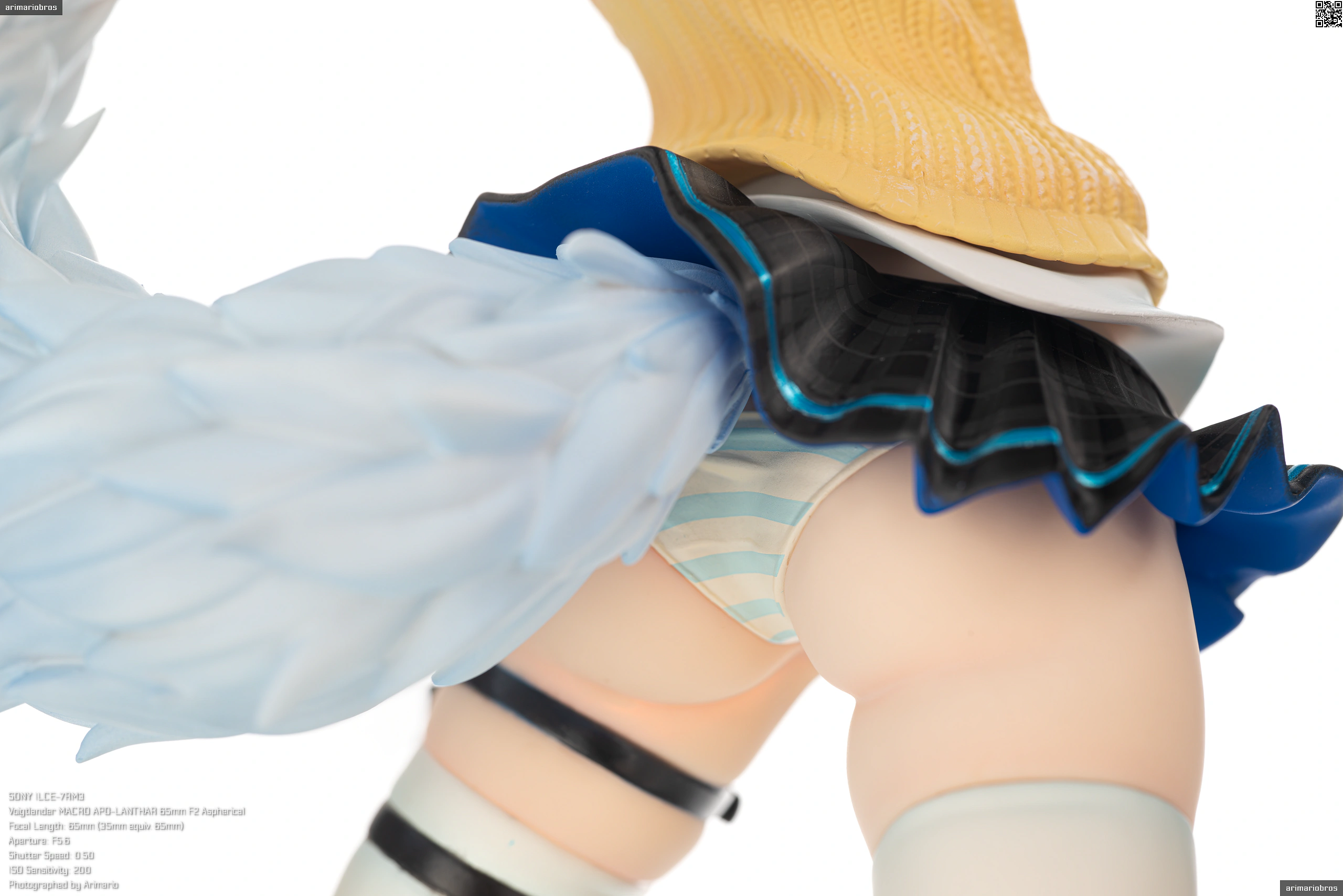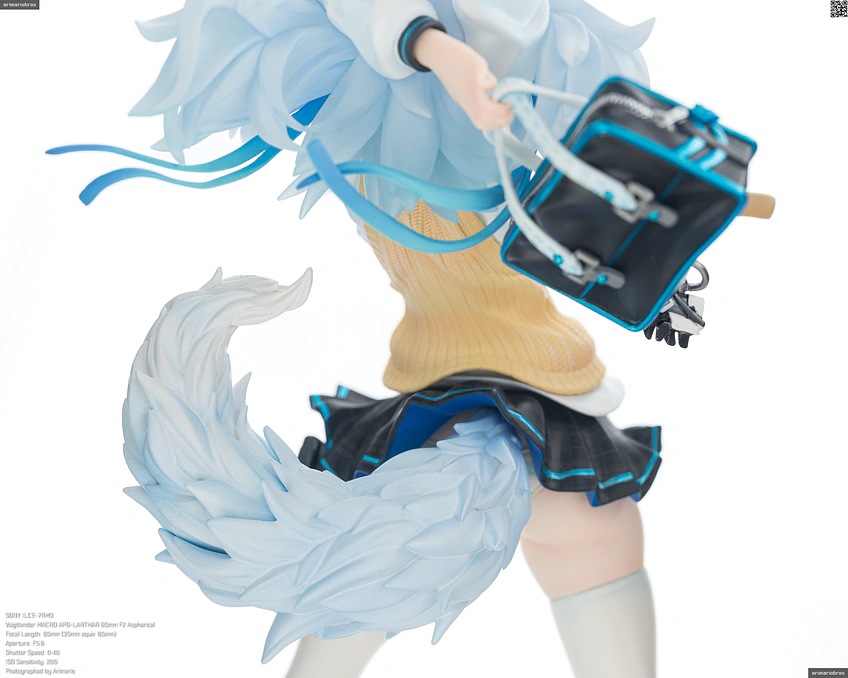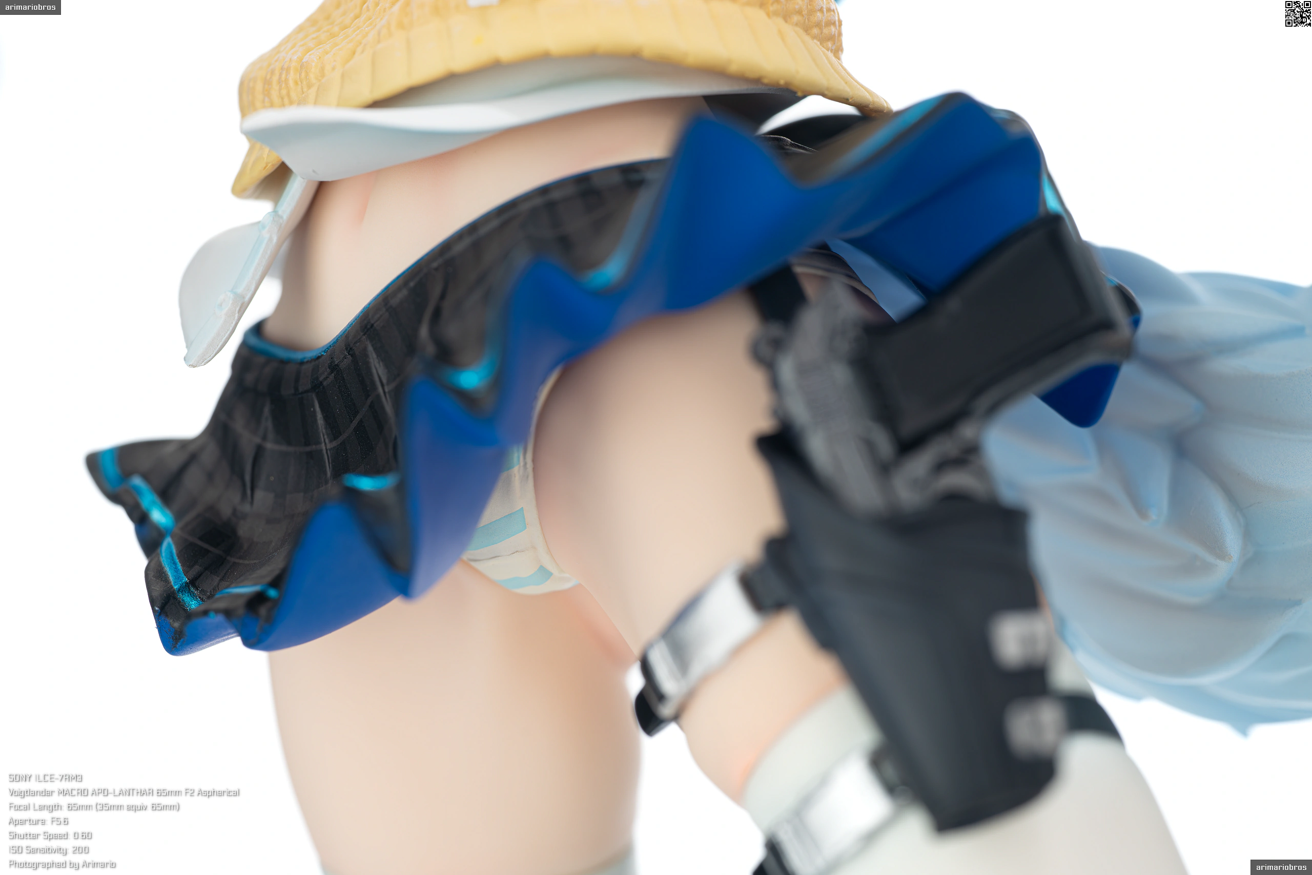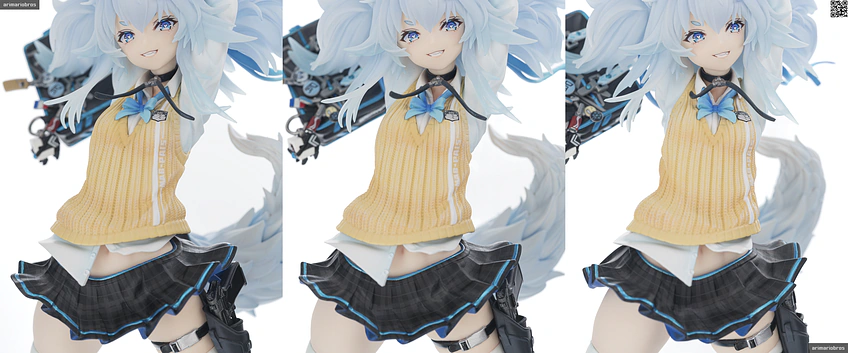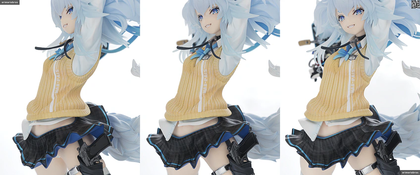 下半身のほうは、かなりミニ丈なスカートを着用。あまり目立ちませんがチェック柄になっており学生服っぽさを残している一方で、メタリックブルーの装飾が入っていたり、裏側は青色になっていたりと、攻めたデザインです。プリーツスカートなので裾のメタリックブルーは塗装が難しい箇所ですが、若干のにじみ、むらが見られるものの破綻はありません。
