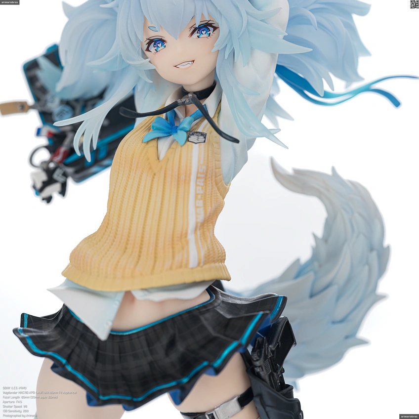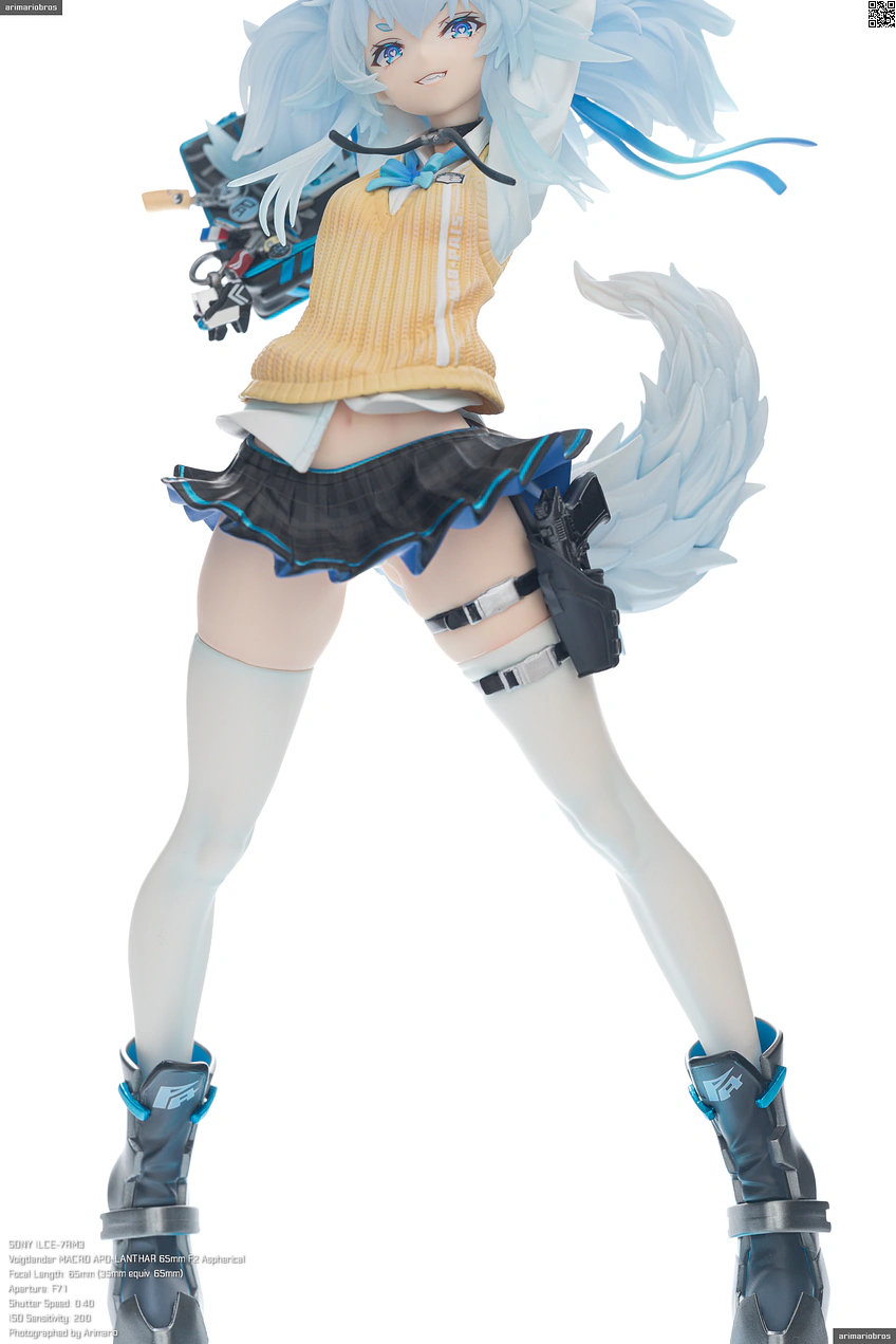 大人気スマホゲーム『ドールズフロントライン』からハンドガンの人形「PA-15」を1/7スケールフィギュア化。スキンテーマ・スーパーケモミミ学院に登場したJKをイメージした制服姿をモチーフに立体化しました。全身を見せつけるように大きく伸びをしたポーズや挑発的な笑顔、カバンに付けられた多くのアクセサリーなど推せるポイント満載でお送りします!また、オプションの右手パーツを使用することで銃を持たせた状態にすることも可能です。お好みの姿でお楽しみください!