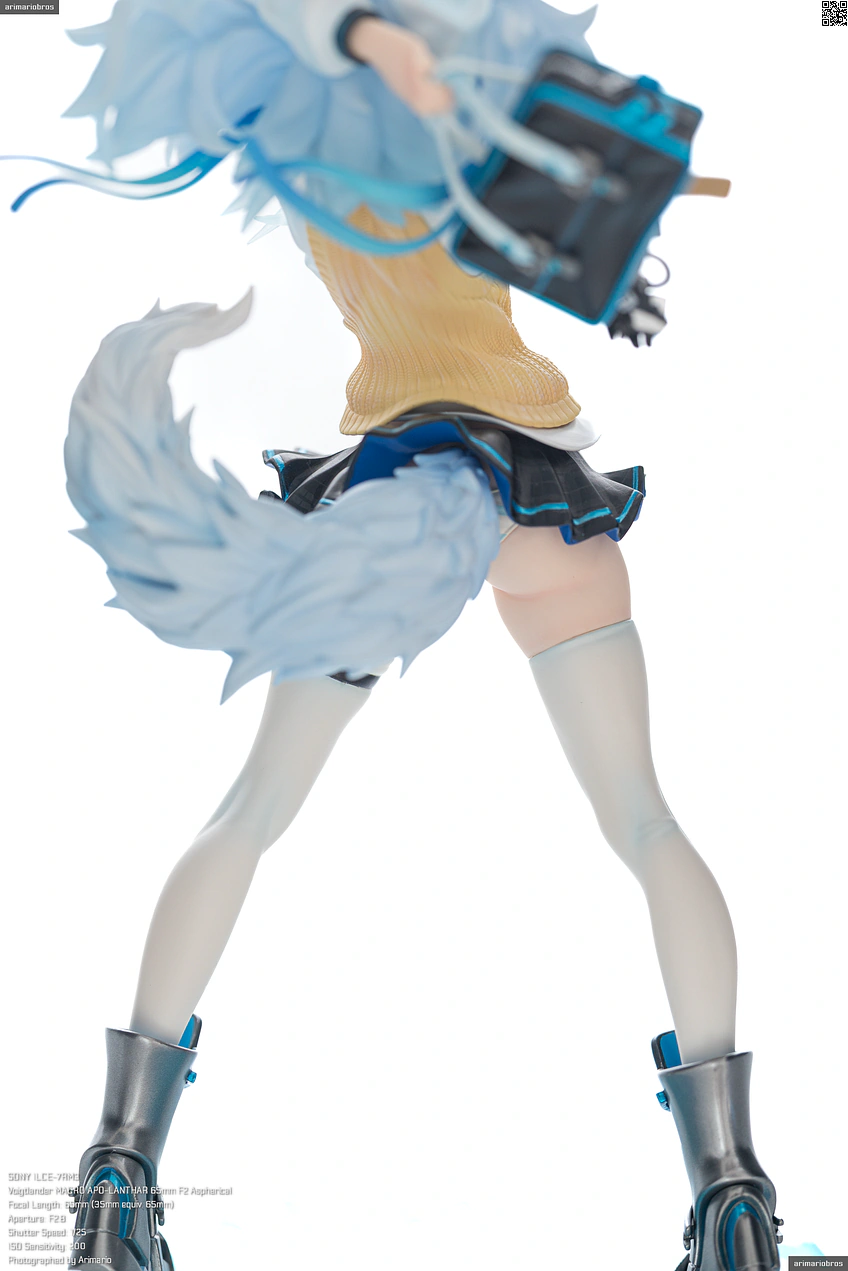 脚部は白のニーハイソックス。すらっとした美脚が背伸びしたポーズで際立っていますね。太ももやふくらはぎの曲線美、膝まわりの細かい凹凸などもしっかり造形されており、シンプルながらもよくできていると思います。スクールシャツと同様に、白ニーハイのシャドウも青で吹かれています。