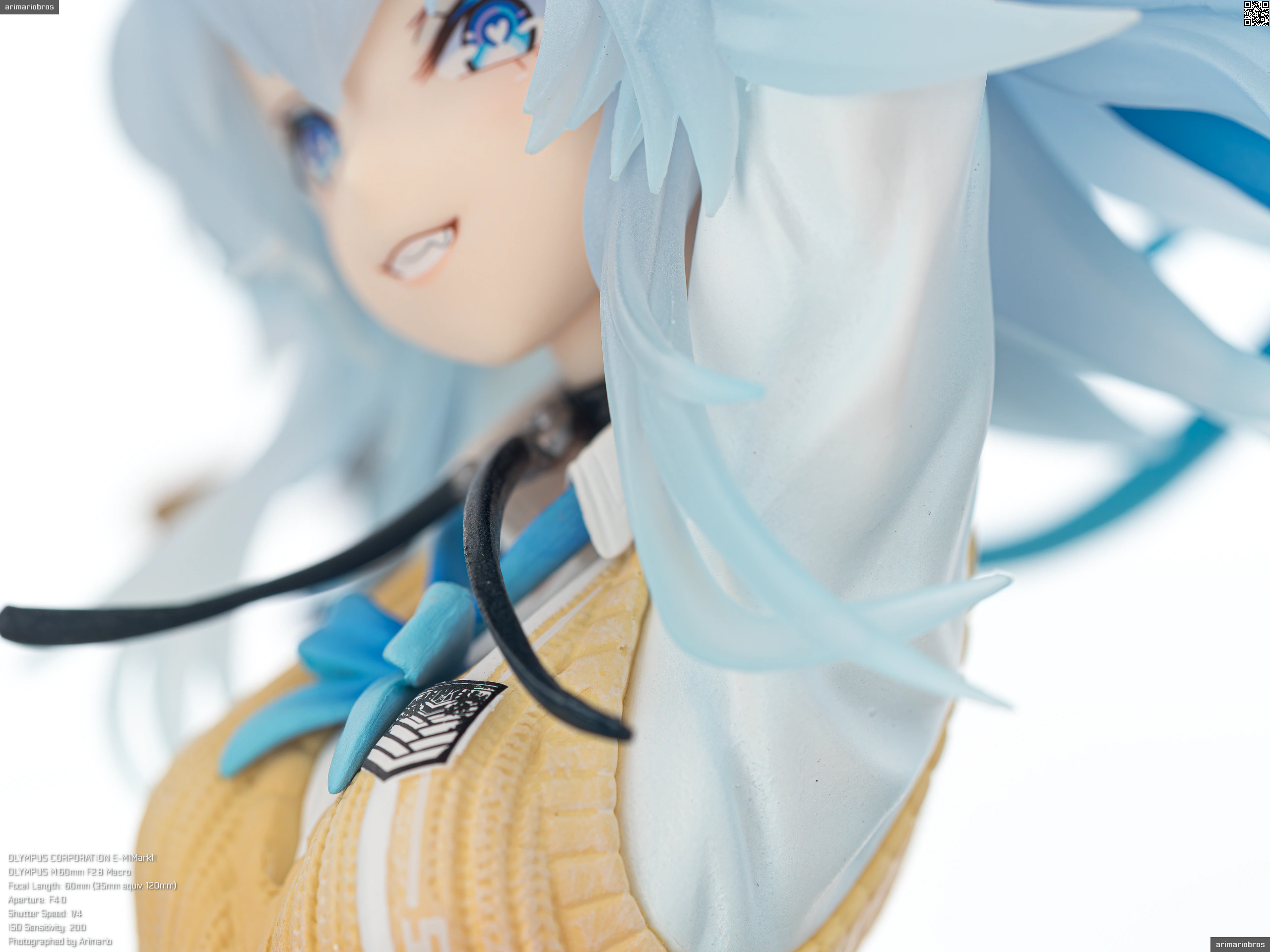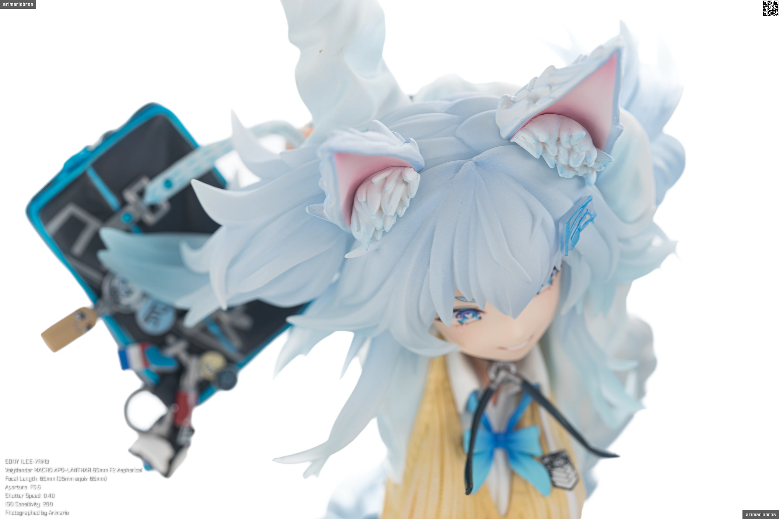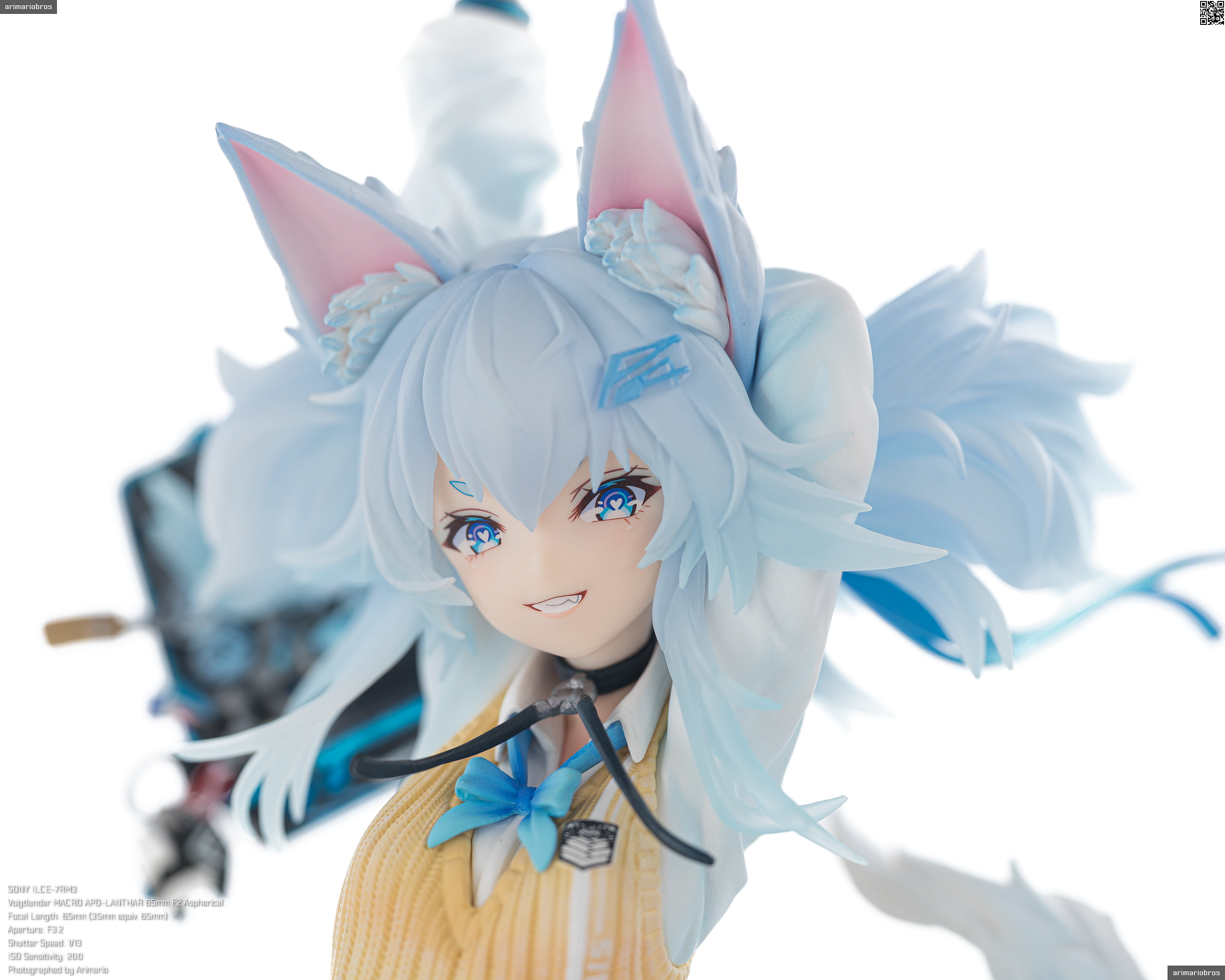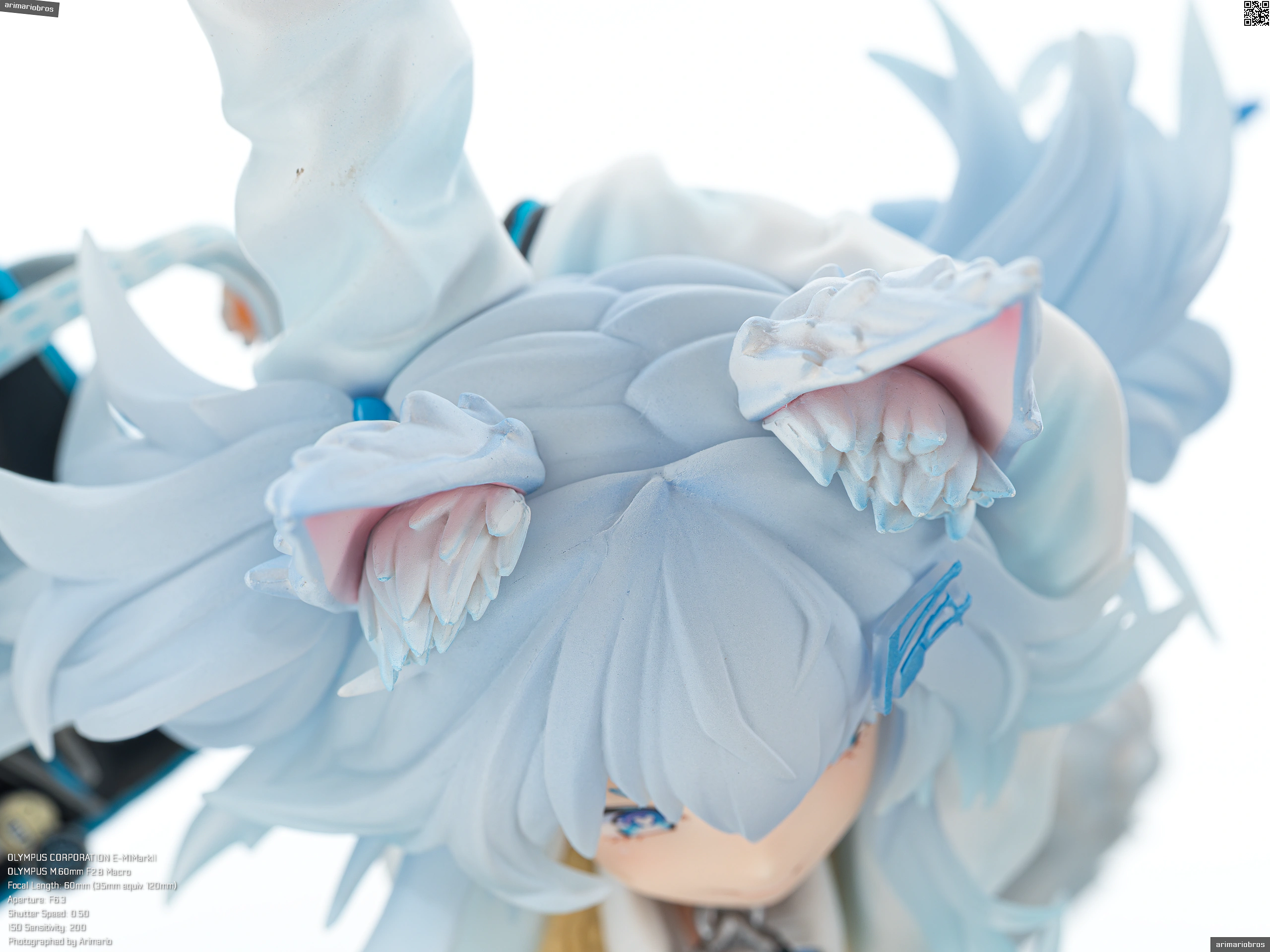 ポージングの再現度もそうですが、彩色見本からの変化がないところが嬉しい。強いていうなら、髪色は彩色見本より水色が強くなっているようにも感じますが、撮影時の色被りや現像時の設定でどうとでも転びそうな差です。ファット・カンパニーは比較的シンプルな造形のフィギュアを手掛けており派手さはありませんが、手堅いメーカーという印象がありますね。
