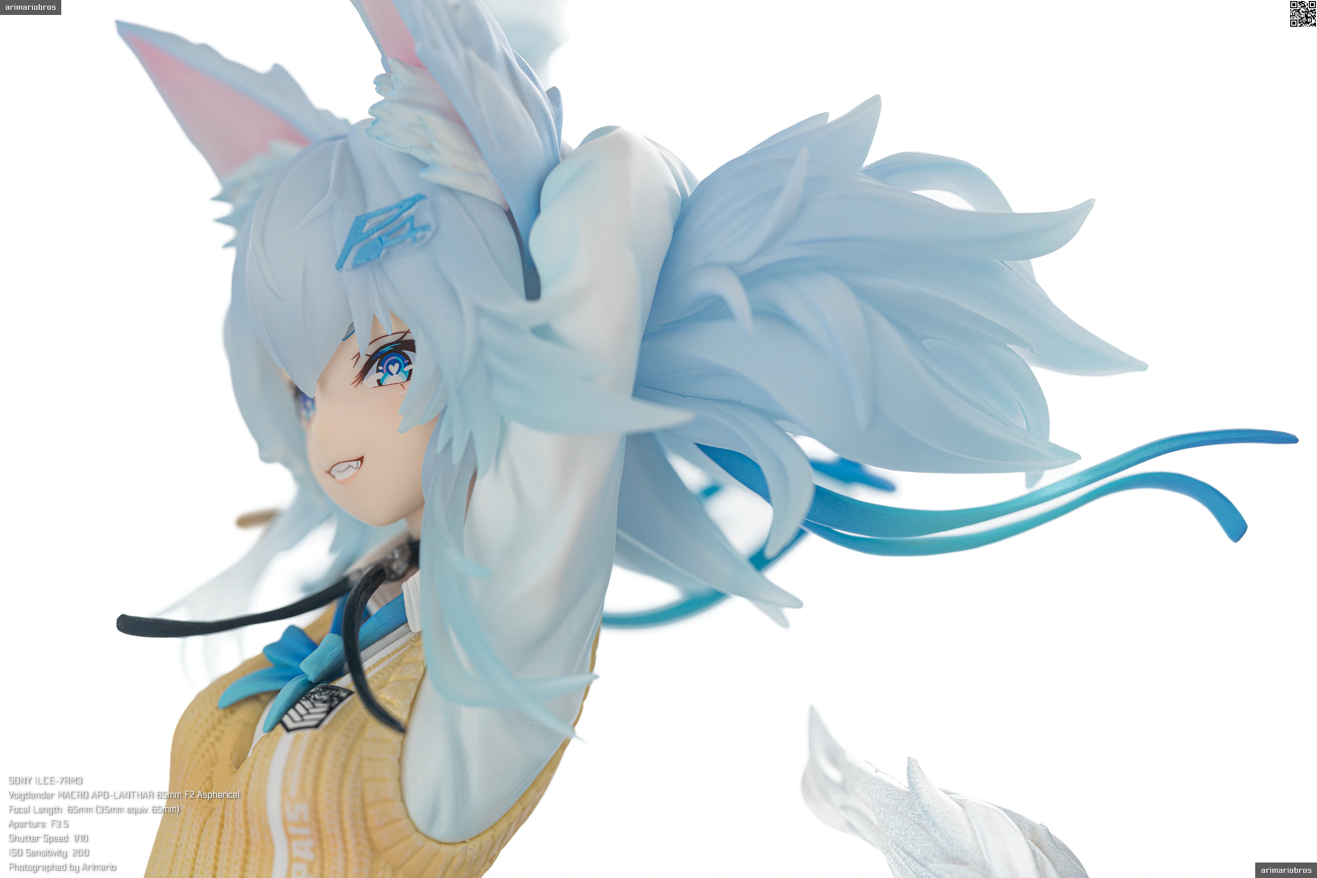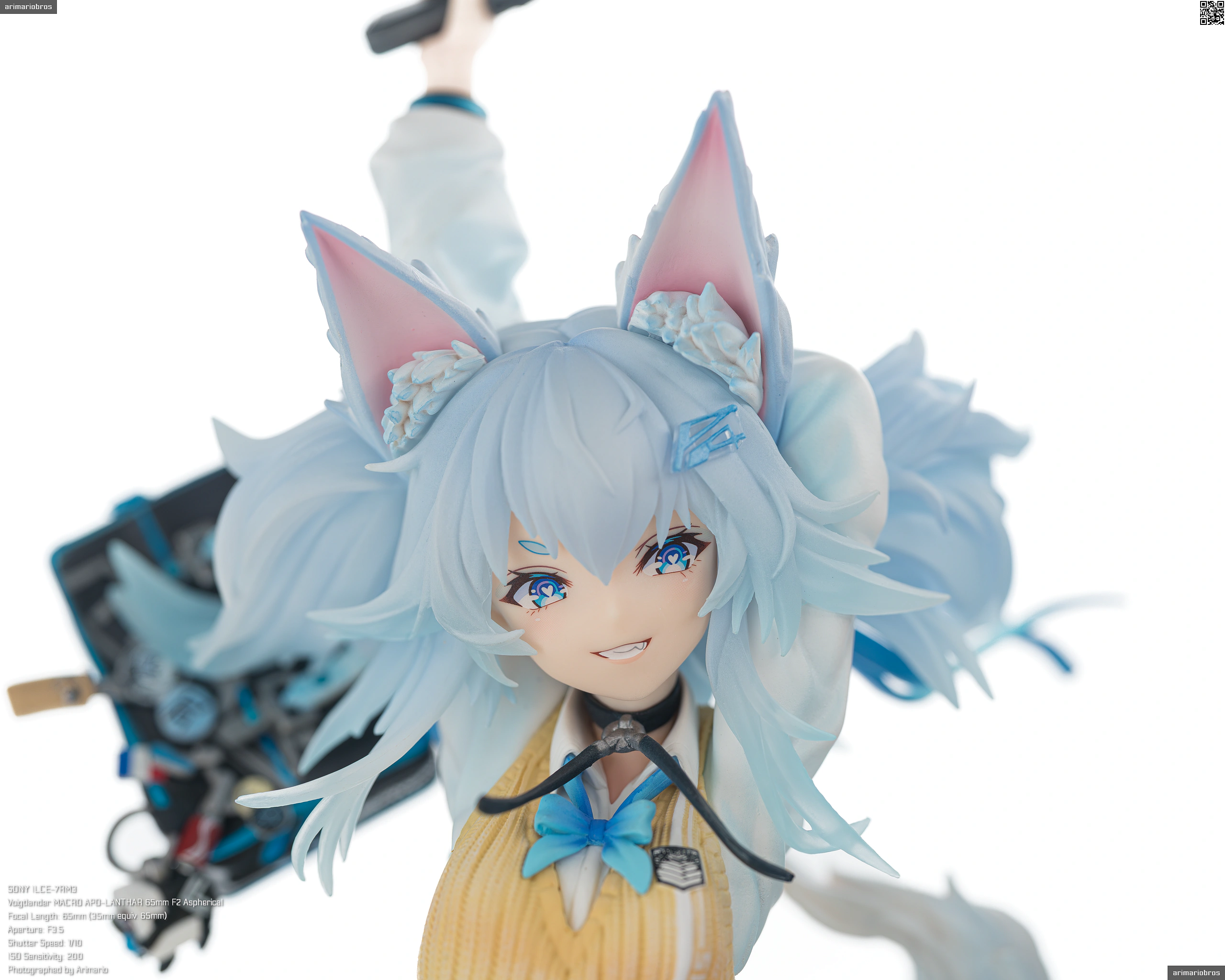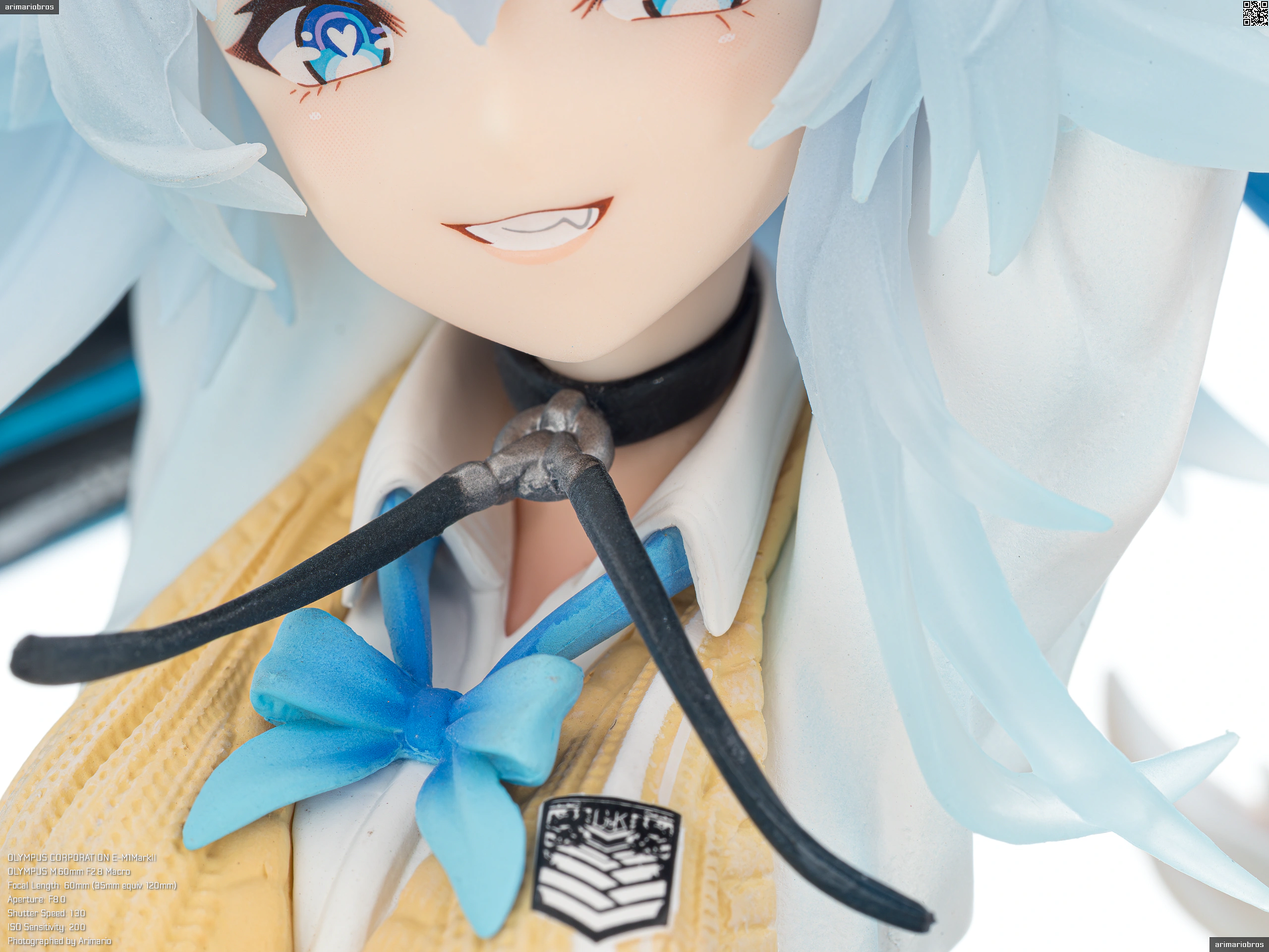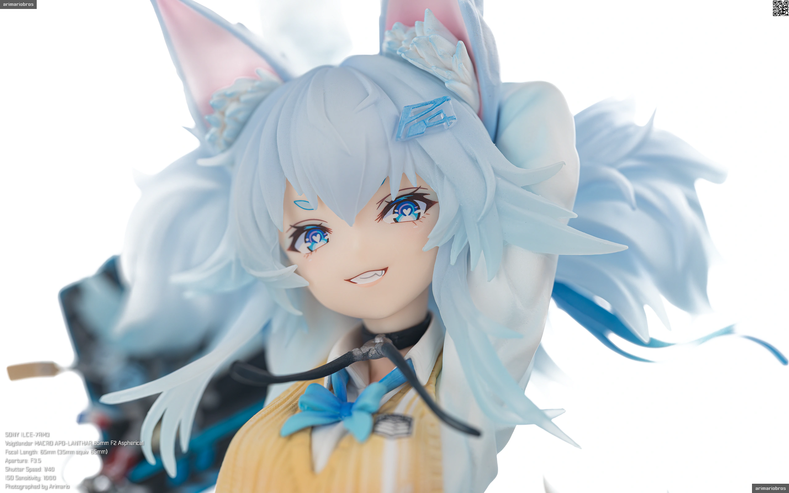 ポージングの再現度もそうですが、彩色見本からの変化がないところが嬉しい。強いていうなら、髪色は彩色見本より水色が強くなっているようにも感じますが、撮影時の色被りや現像時の設定でどうとでも転びそうな差です。ファット・カンパニーは比較的シンプルな造形のフィギュアを手掛けており派手さはありませんが、手堅いメーカーという印象がありますね。