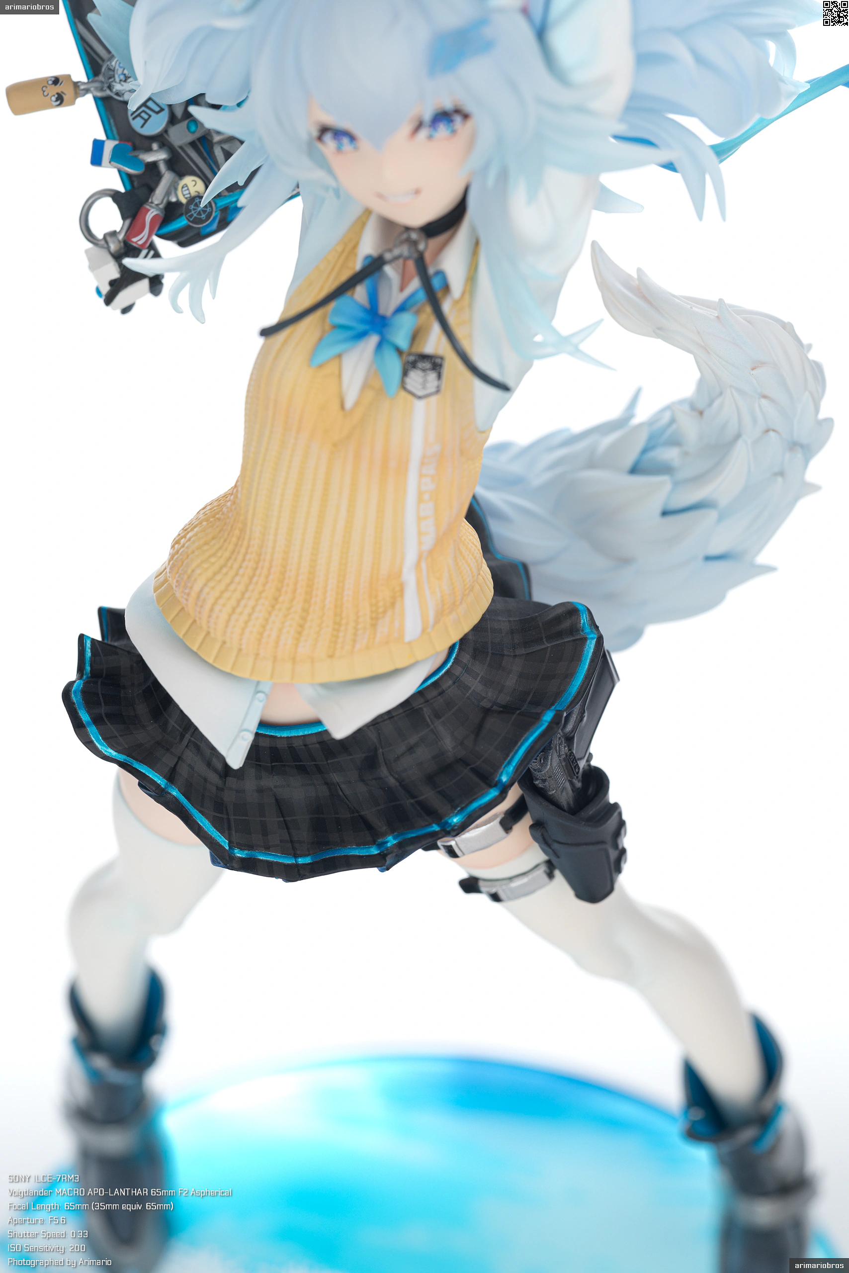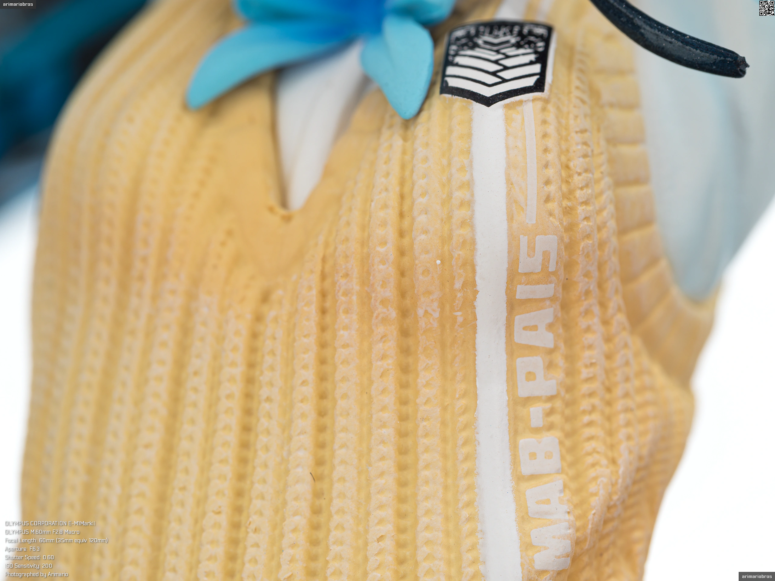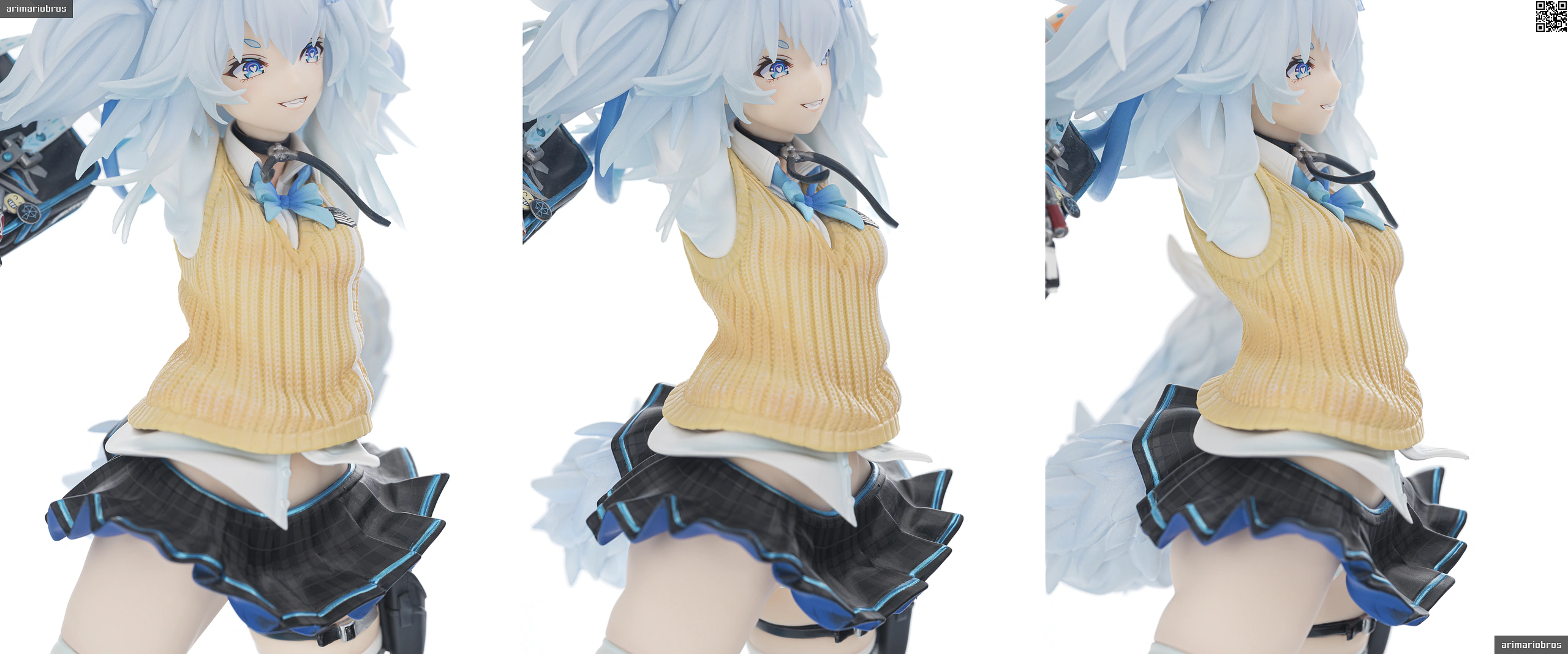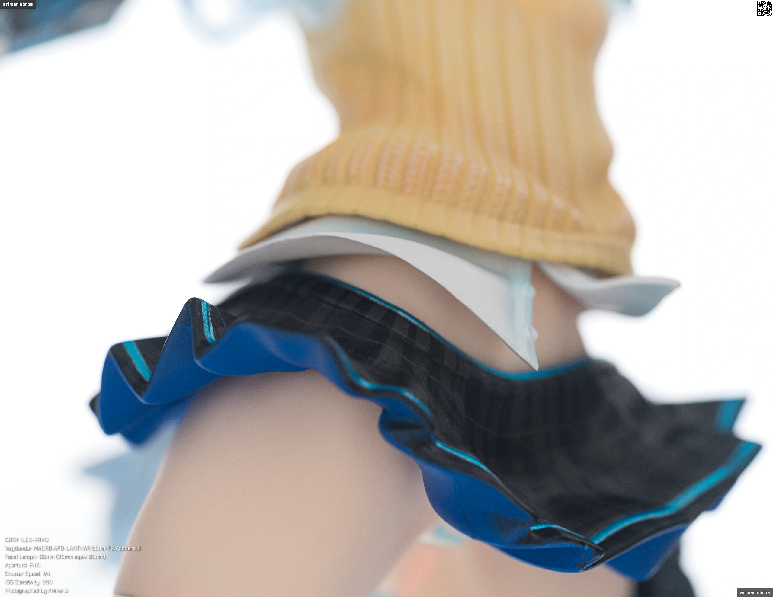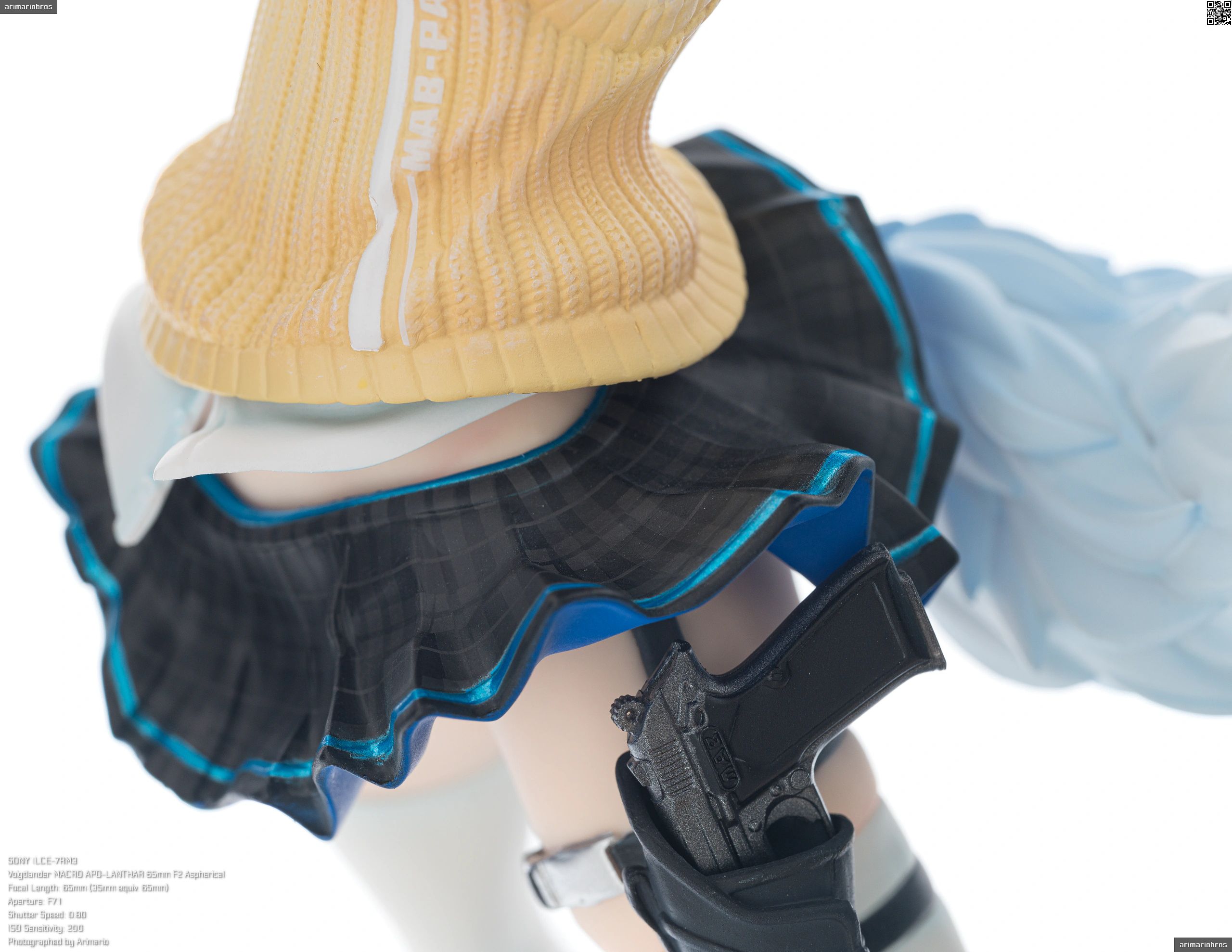 下半身のほうは、かなりミニ丈なスカートを着用。あまり目立ちませんがチェック柄になっており学生服っぽさを残している一方で、メタリックブルーの装飾が入っていたり、裏側は青色になっていたりと、攻めたデザインです。プリーツスカートなので裾のメタリックブルーは塗装が難しい箇所ですが、若干のにじみ、むらが見られるものの破綻はありません。