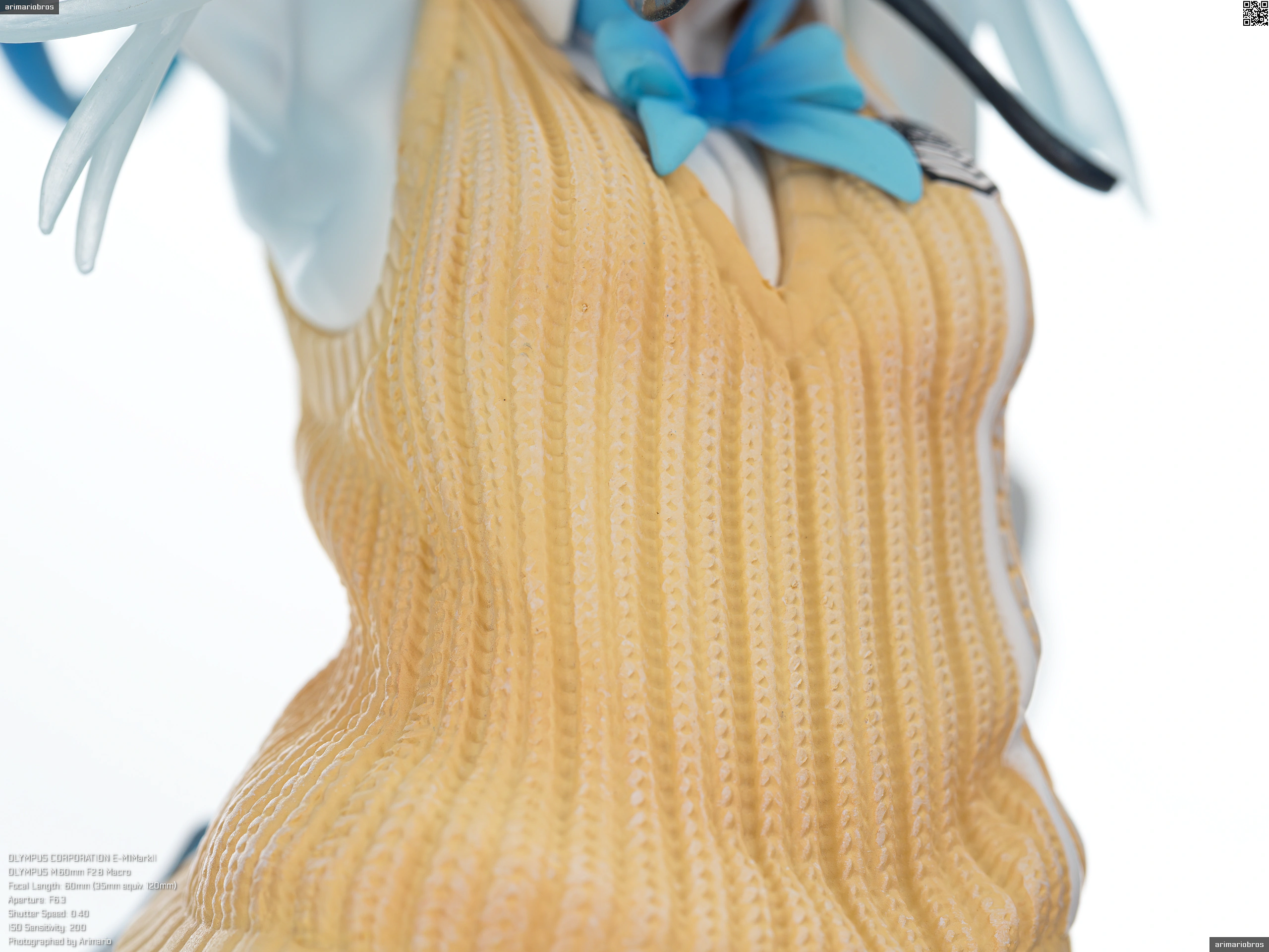 胴部はシンプルな制服スタイル。見どころはスクールセーターの質感でしょうか。細かいところまでニット生地を再現しており、遠目からであれば本物のセーターのように見える完成度です。ポージングにあわせた皺の表現もリアリティあってよいですね。