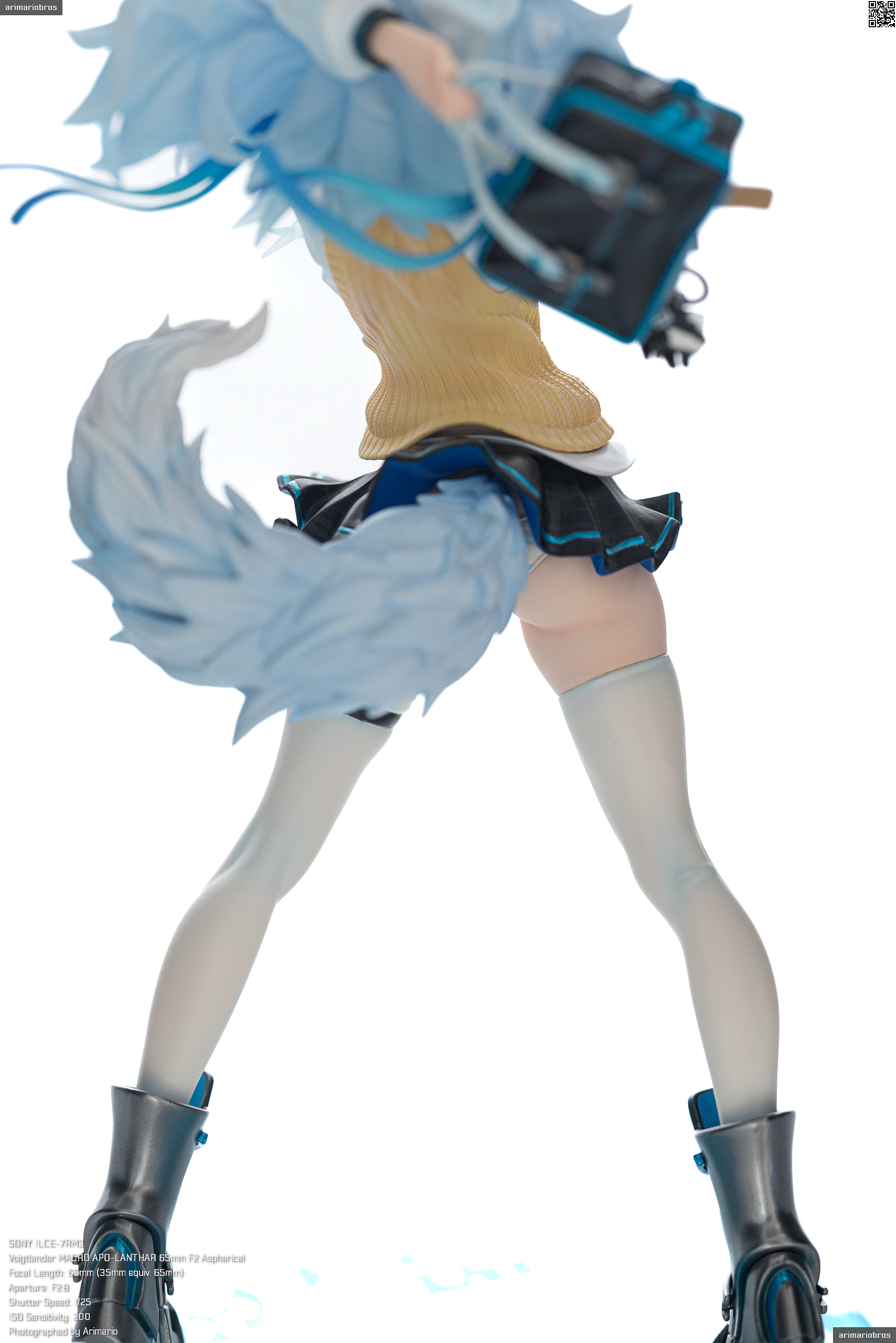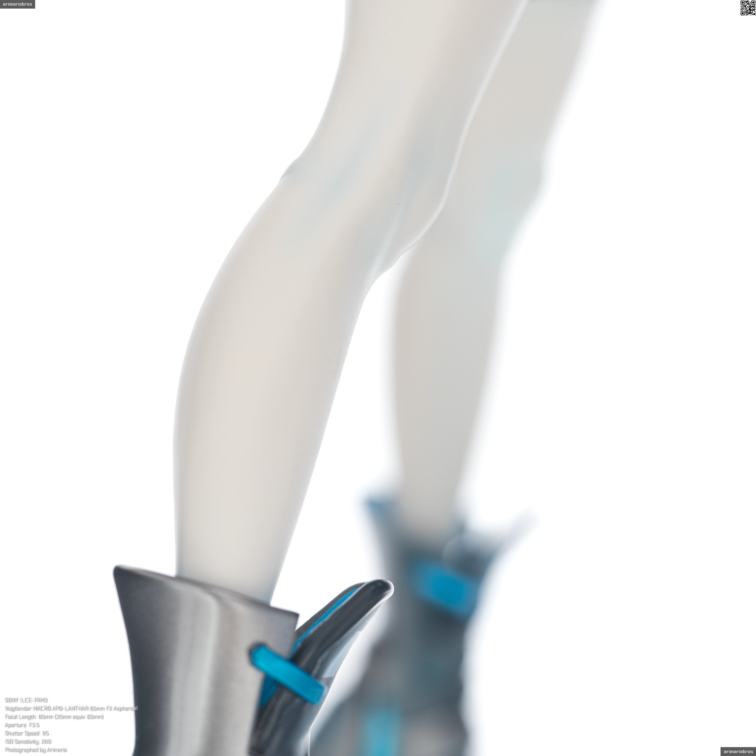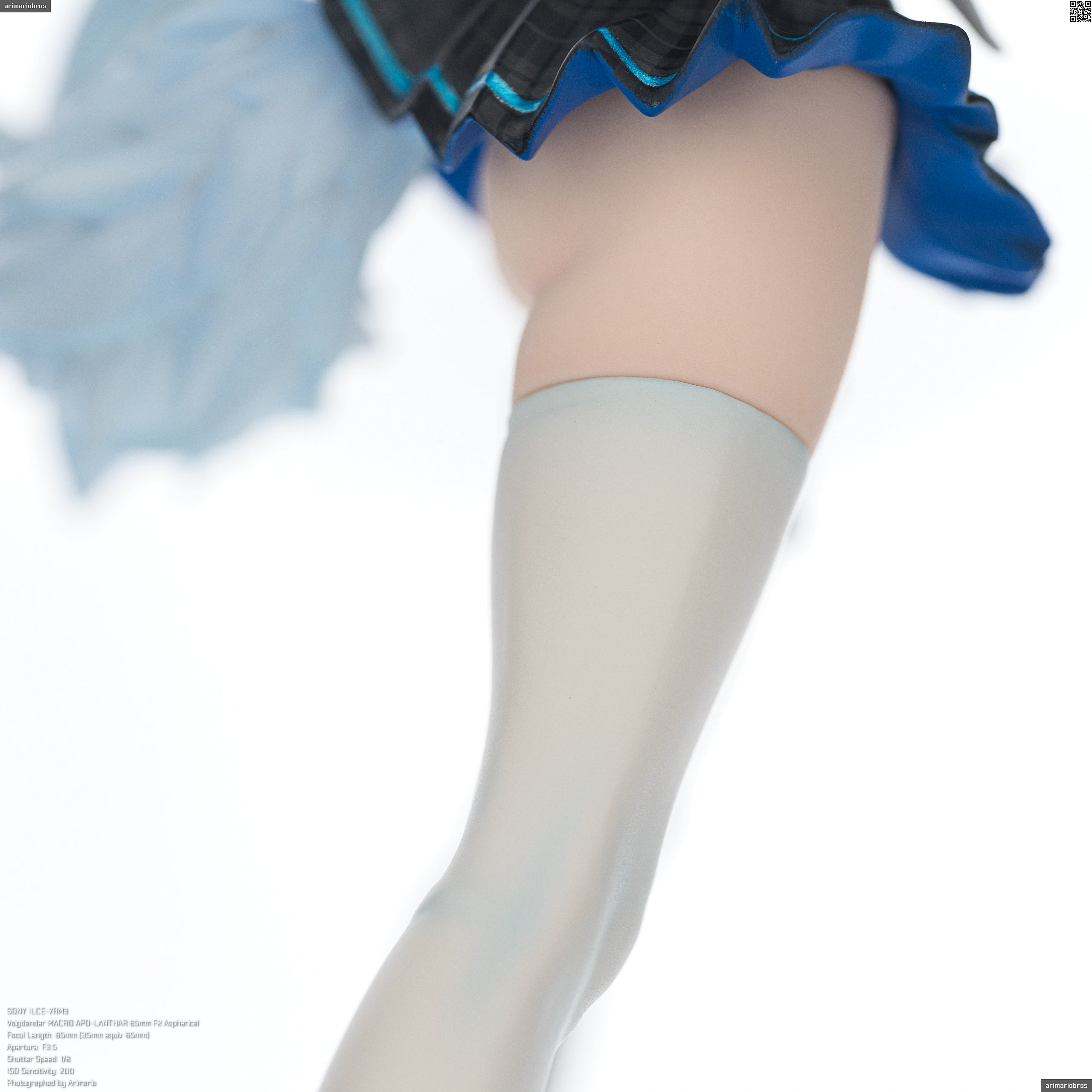 脚部は白のニーハイソックス。すらっとした美脚が背伸びしたポーズで際立っていますね。太ももやふくらはぎの曲線美、膝まわりの細かい凹凸などもしっかり造形されており、シンプルながらもよくできていると思います。スクールシャツと同様に、白ニーハイのシャドウも青で吹かれています。