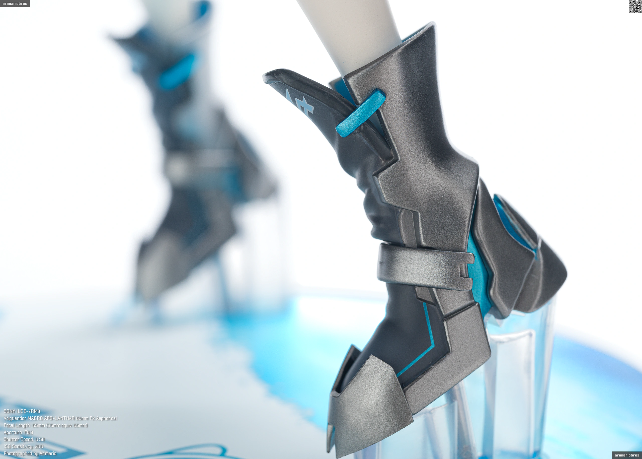 基本的にここも塗装は手堅い。ものすごく細かいですが、ブーツの内側までブルー塗装を入れていますね。外側と同じガンメタル色で塗られがちな個所ですが、塗り分けされているとポイント高いです。唯一、私の持っている個体はかかと部分のメタリックブルー塗装に若干のはみ出しがありますが、普通に飾っているぶんには全く見えない箇所だし、ガンメタル色のうえにメタリックブルーのはみ出しなのでそもそも目立ち辛く、目くじら立てるほどではないかな。