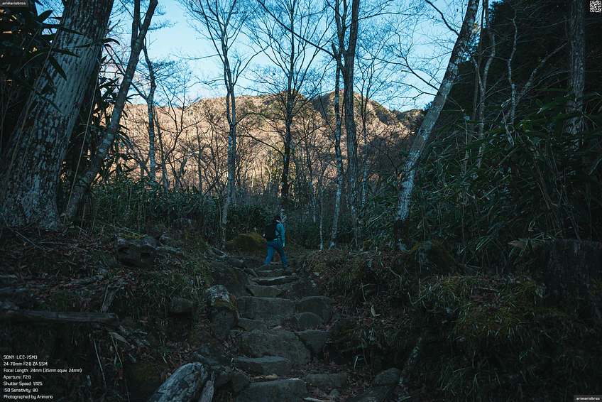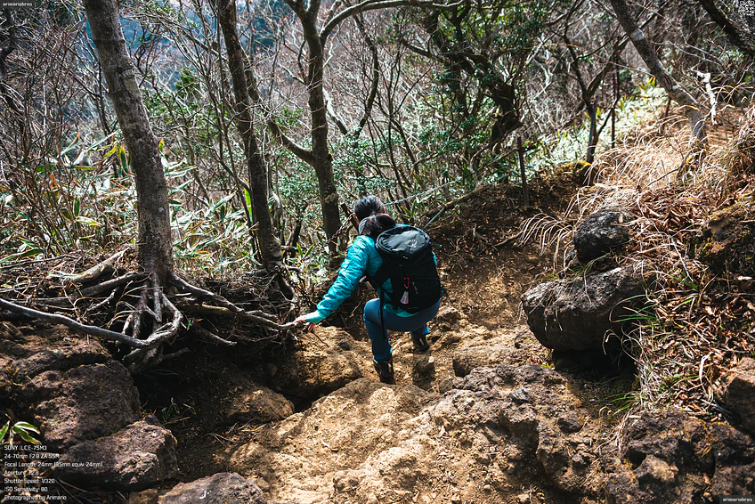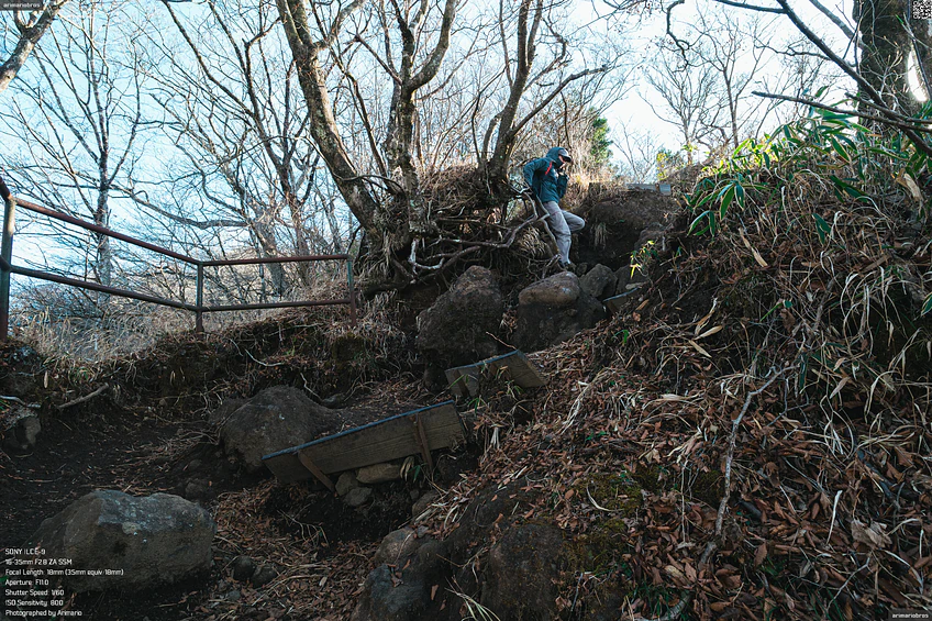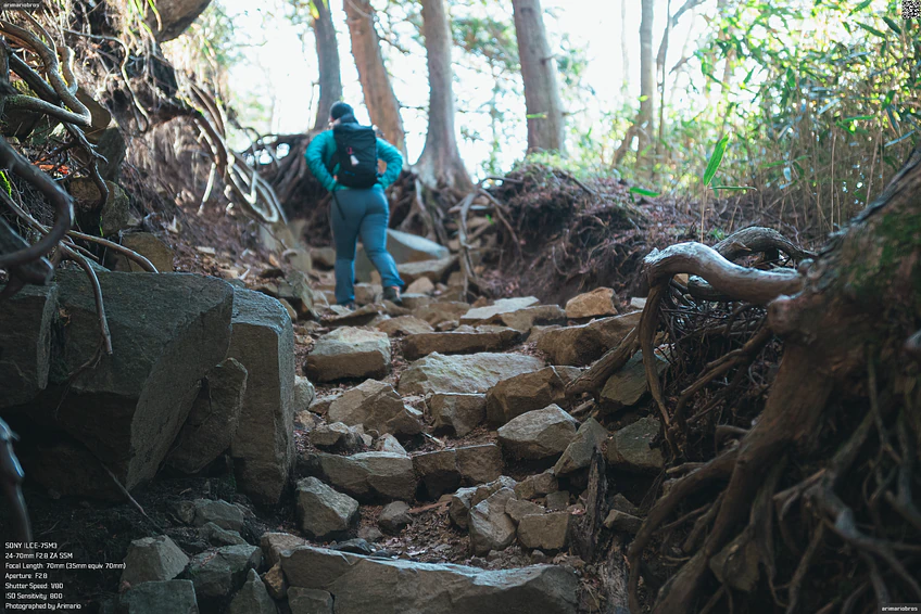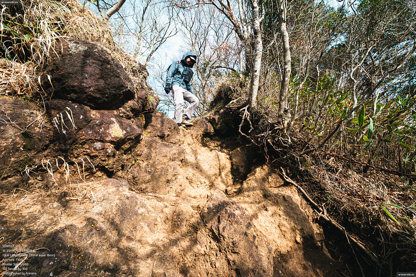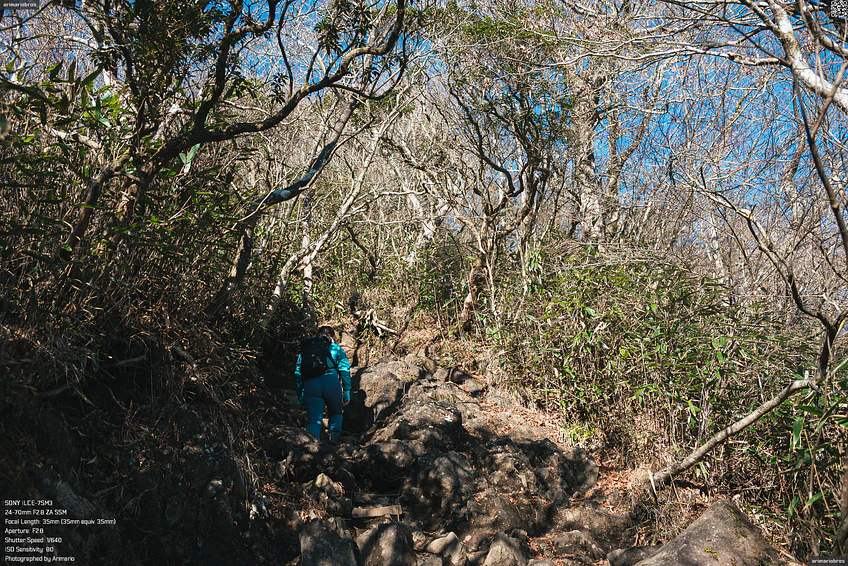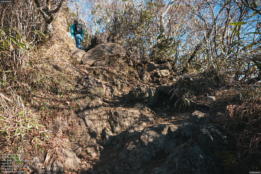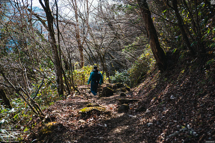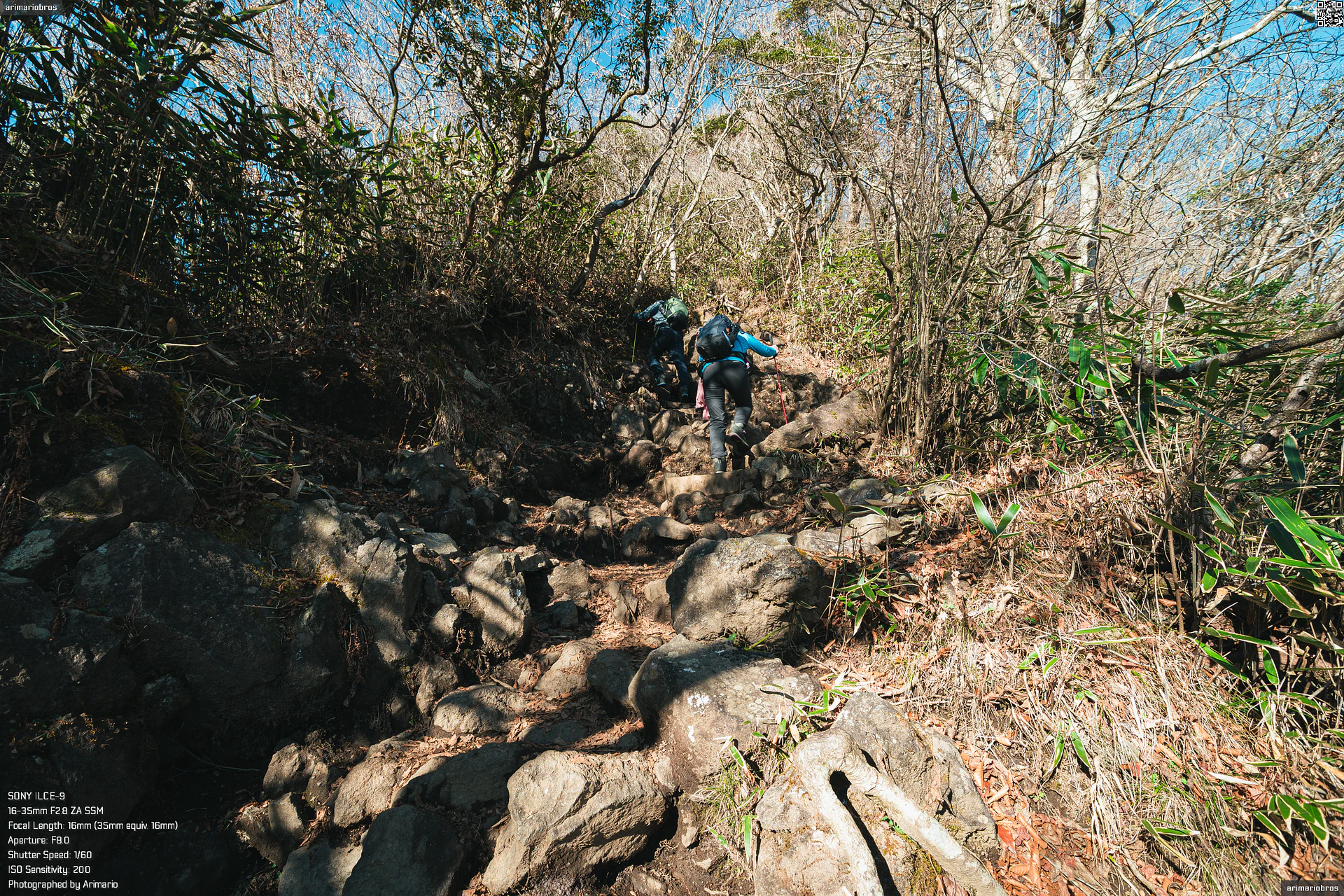 金時山からは、乙女峠へ向かうコースを下ります。乙女峠方面は、公時神社と比べると山頂直下がやや険しいですね。よく整備されているのは変わりませんが、狭い階段や段差の大きい岩場なども出てきますので、登山初心者が通過する際には少し注意したほうがよいかもしれません。