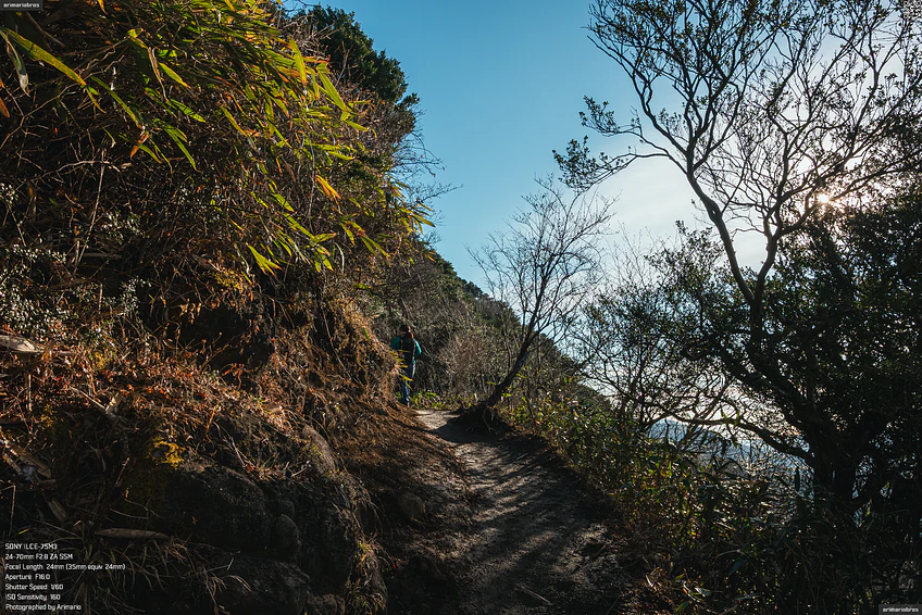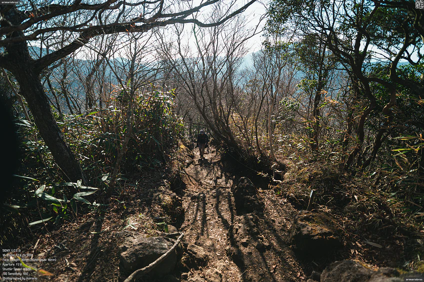 合流地点を過ぎると、山頂に向けた本格的な登りがスタート。とはいえ、急登といえるほどの傾斜のある区間はありませんし、ずっと登りっぱなしではなく、短いながらも平坦区間を挟みながらの登りです。初心者ハイカーでも無理なく登ることができるでしょう。
