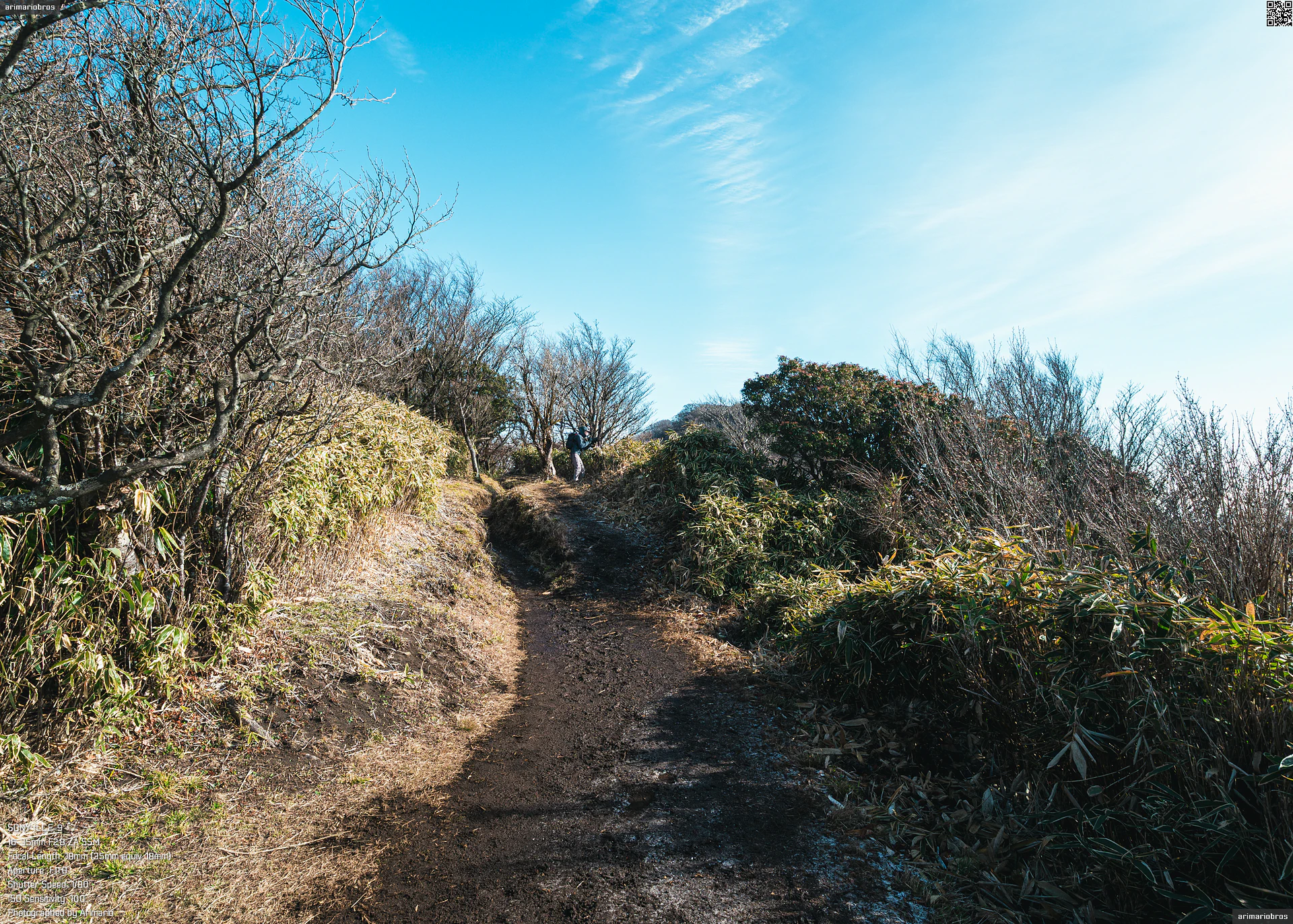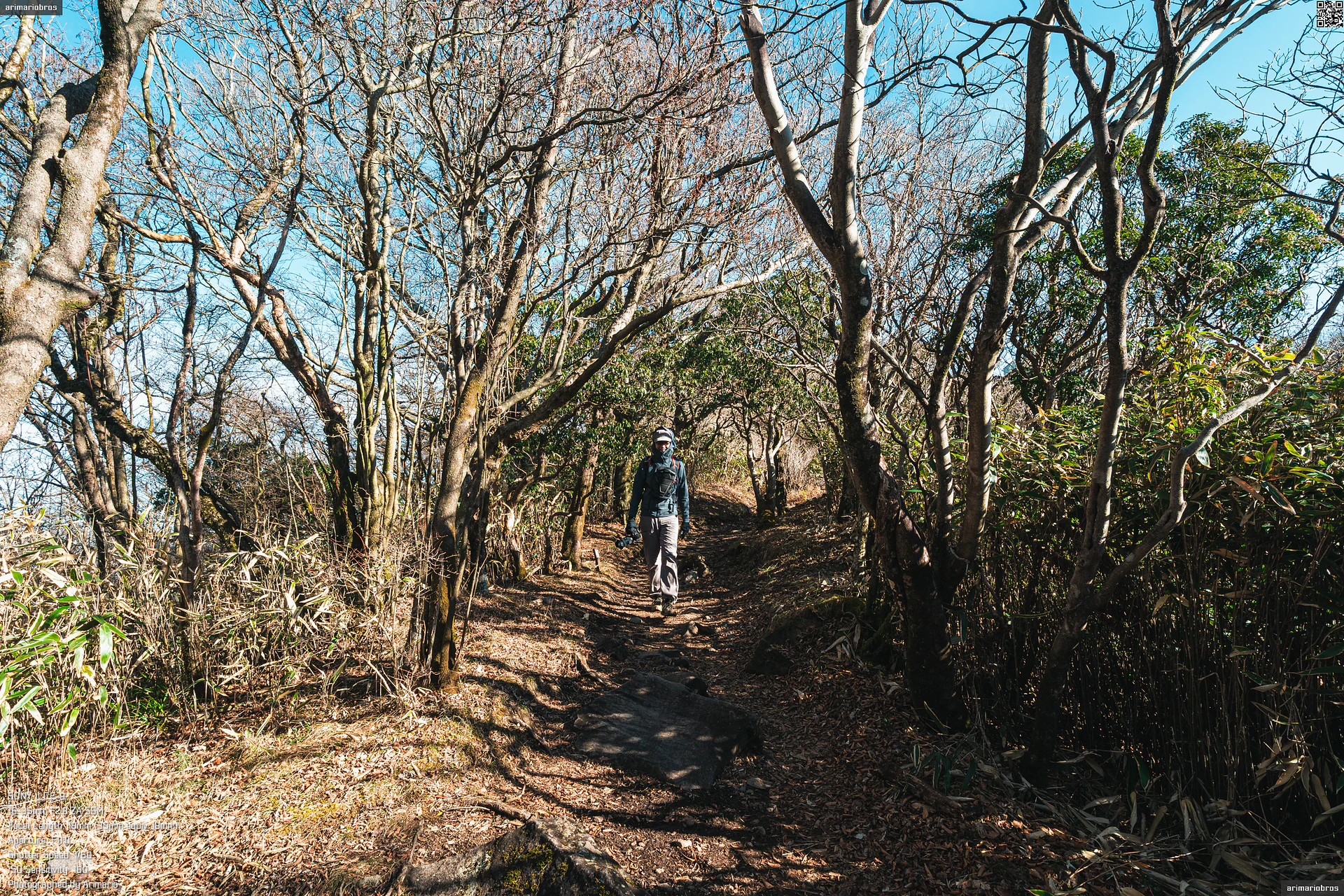 いったん金時山直下の急傾斜区間を過ぎてしまうと、あとは外輪山のなだらかな稜線歩きとなります。もちろん細かいアップダウンはあるのですが、低木に囲まれた平坦区間は稜線歩きならではの楽しさがあります。また、あまりメジャーなコースではないため、すれ違うハイカーはまばらな一方、金時山自体が人気のエリアなので人の気配がまったくないというほどでもないという、いい塩梅の静寂さを楽しめるのが良いですね。