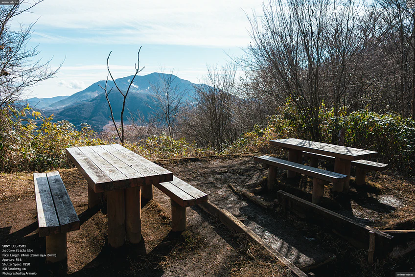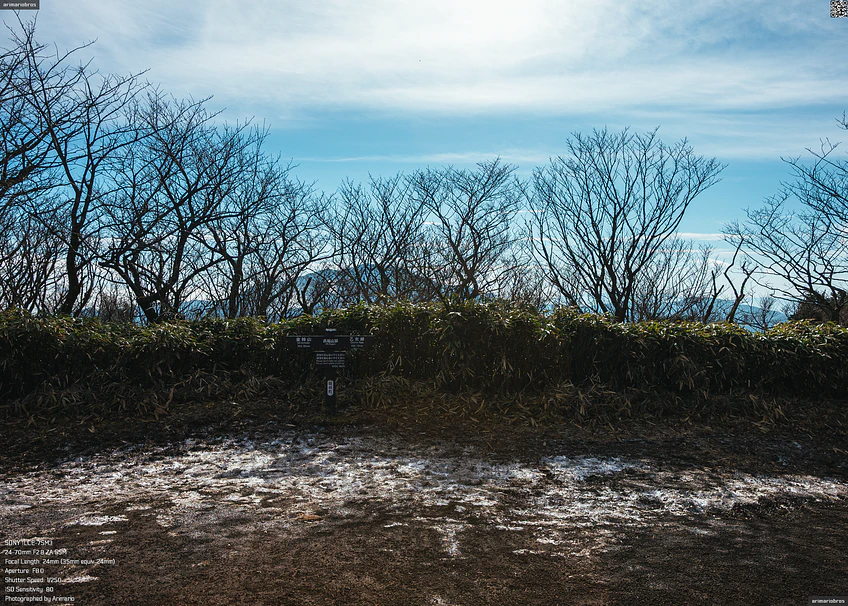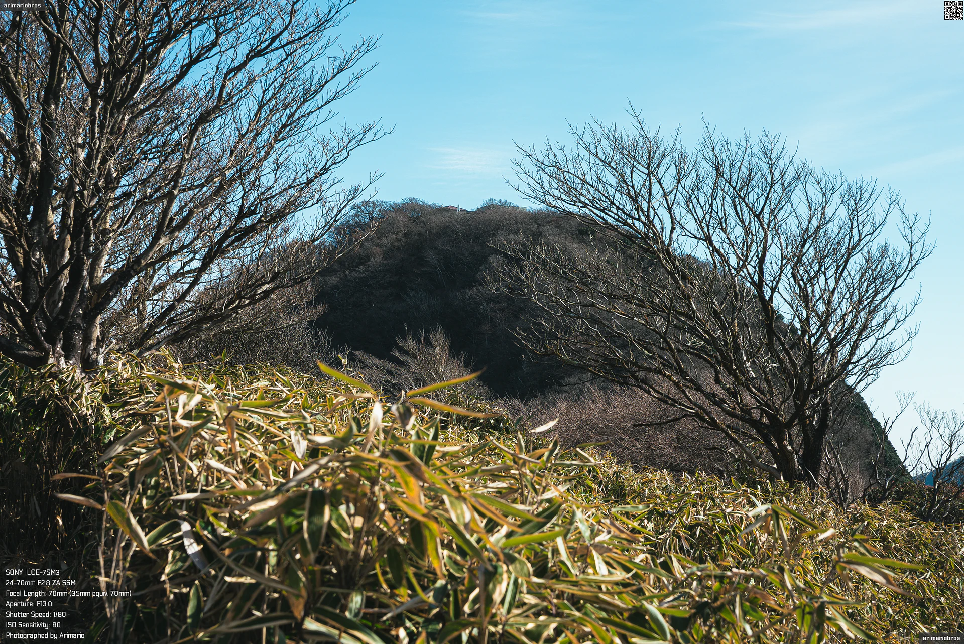 登山口はかなり寒く「このまま車内でぬくぬくしていたい…」と思うほどでしたが、いざ行動開始するとあまり寒さは感じずに登ることができました。山頂での風も、我々が到着した10時頃は穏やかで、特に風による寒さも感じずに風景撮影に勤しむことができました。ただ、山頂到着してからしばらくすると風が少し強くなってきたように感じましたので、午後はもう少し風による冷えを感じたかもしれません。我々は山頂であまり長居しないタイプですが、山頂でのんびり休憩したいという人は念のためダウン・化繊系のミッドレイヤーを持っておくと良いのではないでしょうか。