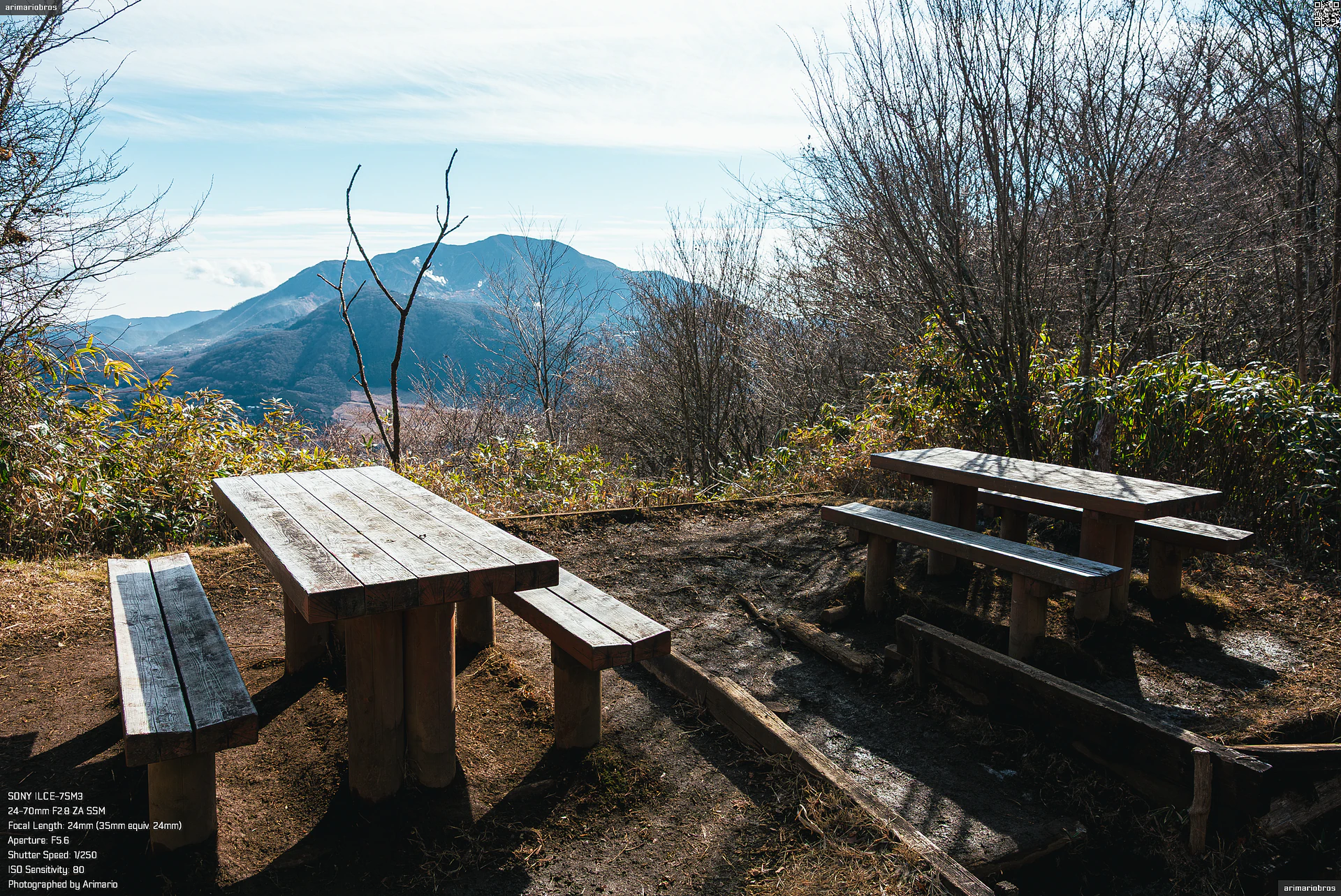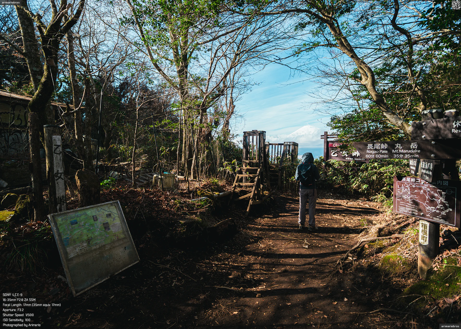 長尾山を過ぎると、乙女峠はすぐそこ。なだらかな下りを15分くらい歩いていくと到着です。乙女峠は「富士見三峠」のひとつに数えられるだけあって、富士山をよく望むことができ、小さな展望デッキも設置されています。ただ、展望デッキに登っても微妙に木々が写真のフレームに入ってしまうので、金時山山頂からの眺めには敵いませんね。